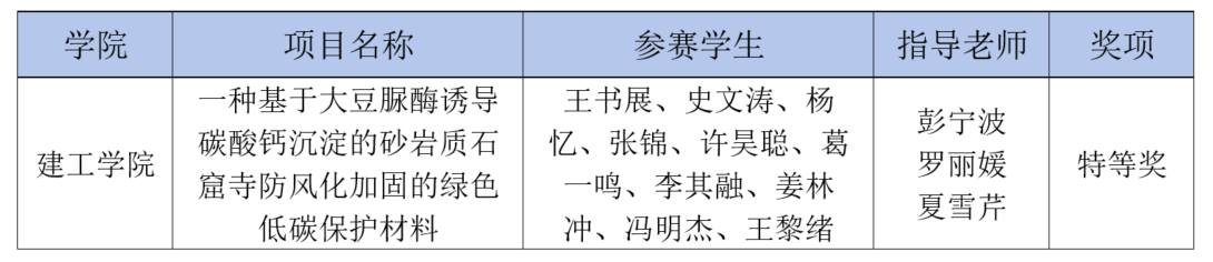 公司云顶国际8588yd教师彭宁波、罗丽媛、夏雪芹指导的“一种基于大豆脲酶诱导碳酸钙沉淀的砂岩质石窟寺防风化加固的绿色低碳保护材料”项目,围绕绿色低碳环保砂岩质石窟寺防风化加固保护材料研发与应用,创新性地提出了一种绿色低碳、环境友好的大豆脲酶诱导碳酸钙沉淀加固技术。团队成员从千年文明的需求中寻找问题,用前沿的交叉学科知识去破解难题,展现了当代青年科技报国的使命担当。
