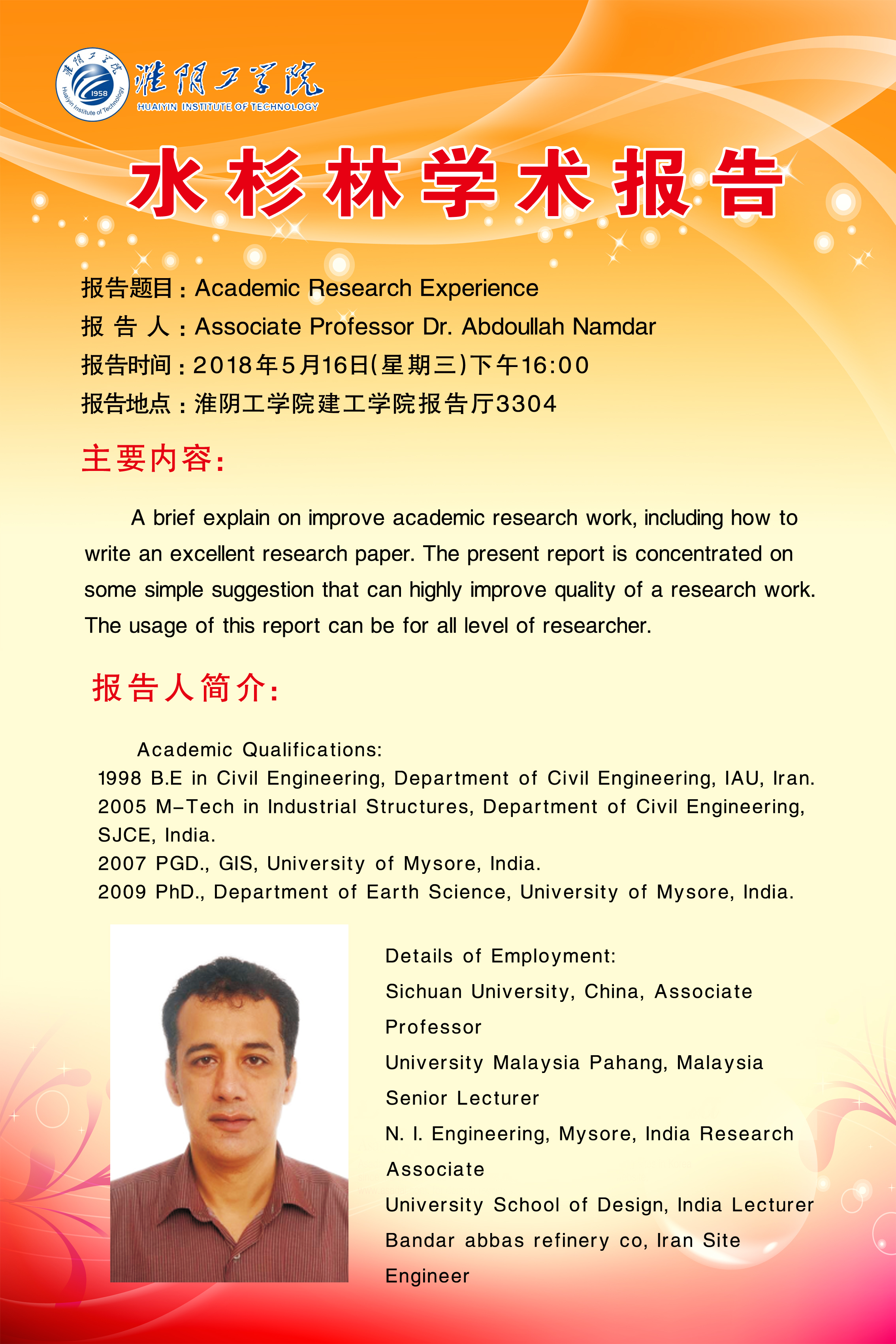 水杉林学术论坛—Namdar博士作学术报告