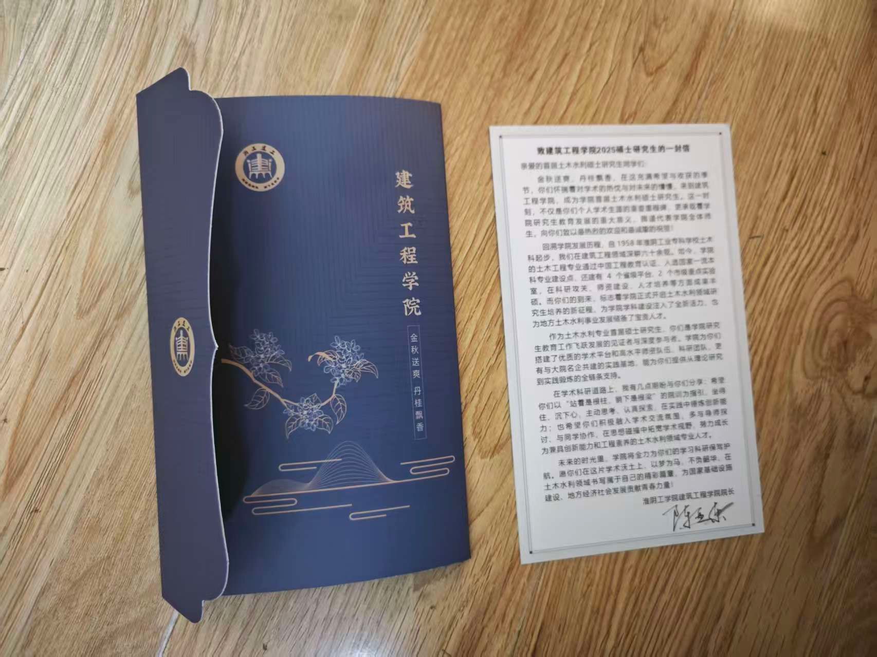 入学报到时公司给全体研究生新生精心准备了入学物资和“致2025硕士研究生的一封信”,介绍公司发展历程,饱含美好期许。在报道现场院领导和新生及家长亲切交流,面对面沟通研究生注意事项,希望家校合力,为新生在学习科研领域保驾护航。