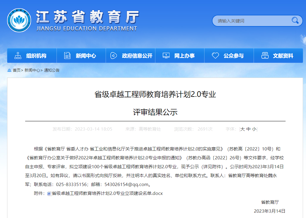 2023年3月14日,省教育厅网站公示省级卓越工程师教育培养计划2.0专业评审结果,公司土木工程专业获批立项。