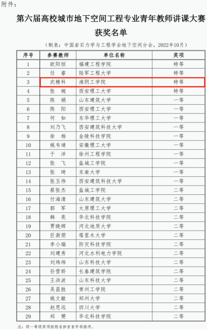 10月19日至23日,第十二届全国高校城市地下空间工程专业建设研讨会暨第六届高校城市地下空间工程专业青年教师讲课大赛在西安理工大学举行。在激烈角逐中,公司云顶国际8588yd青年教师武精科博士崭露头角,荣获特等奖。本次得奖是公司近几年在高教学会排行榜项目里获得的最高奖项。
