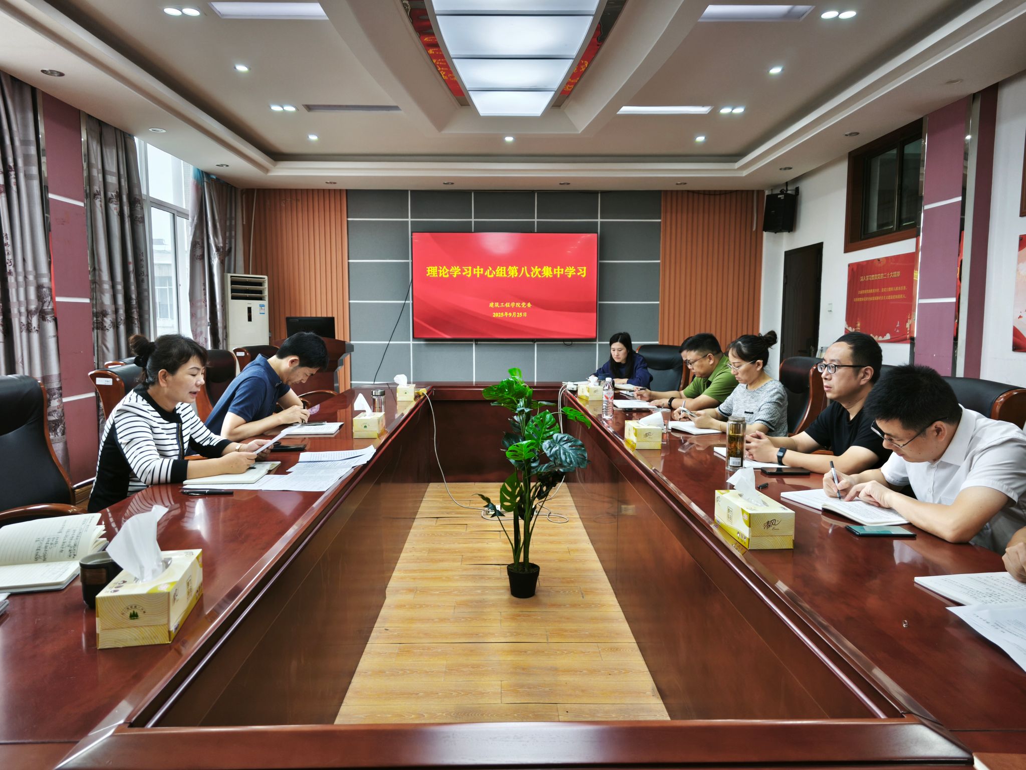 9月25日下午,公司党委开展2025年度理论学习中心组(扩大)第8次集中学习会,学习会由公司党委书记夏雪芹主持,领导班子成员、支部书记、科级干部参加了本次学习会。