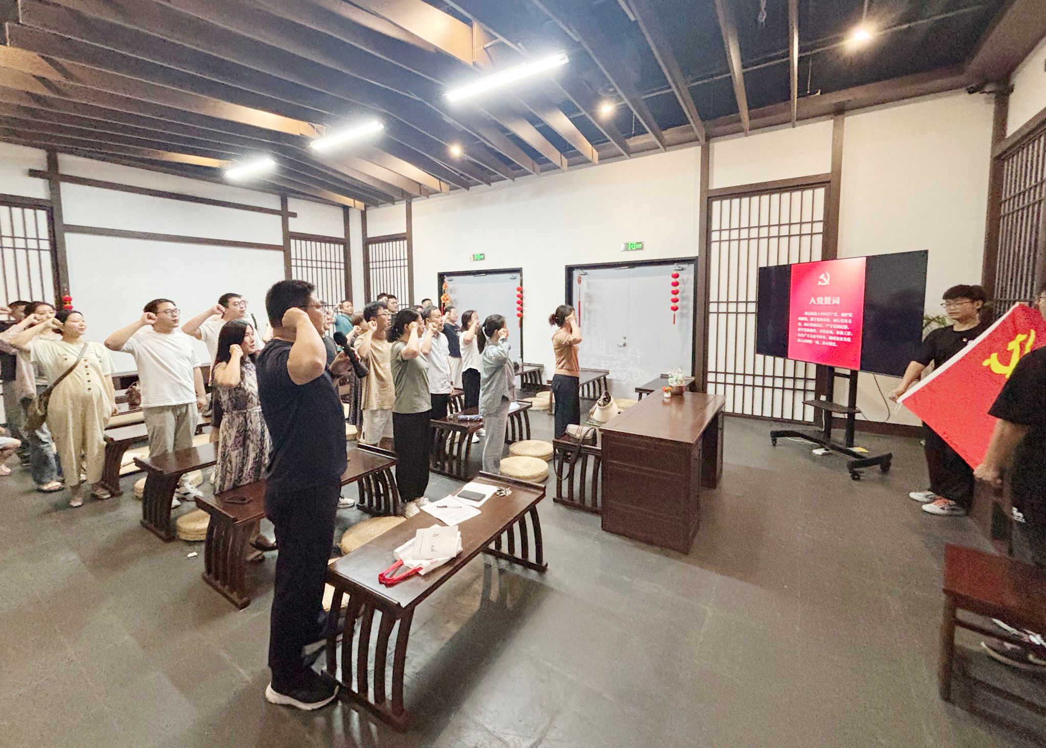 集体观看纪录片《运河上的淮安》后,各位党员面向党旗,庄严宣誓,重温入党誓词。“我志愿加入中国共产党…”铿锵有力的誓言在书屋中回荡,字字千钧,涤荡心灵,让每一位党员重温了入党时的初心与承诺,进一步强化了身份意识和责任担当。