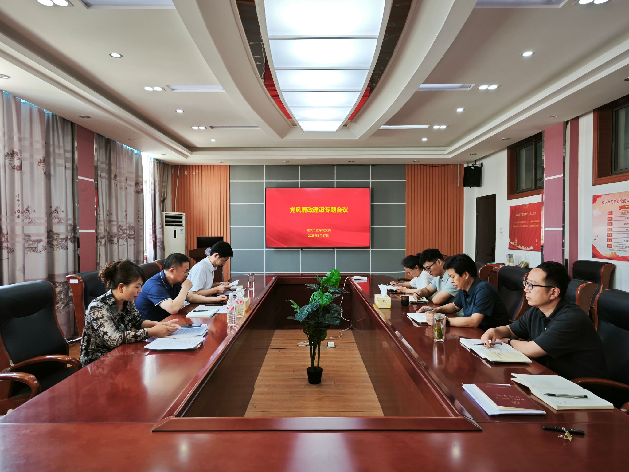 6月17日,公司党委召开党风廉政专题会议。公司党委常委、副董事长严云洋到会指导。会议由公司党委书记夏雪芹主持,公司领导班子成员参加会议。