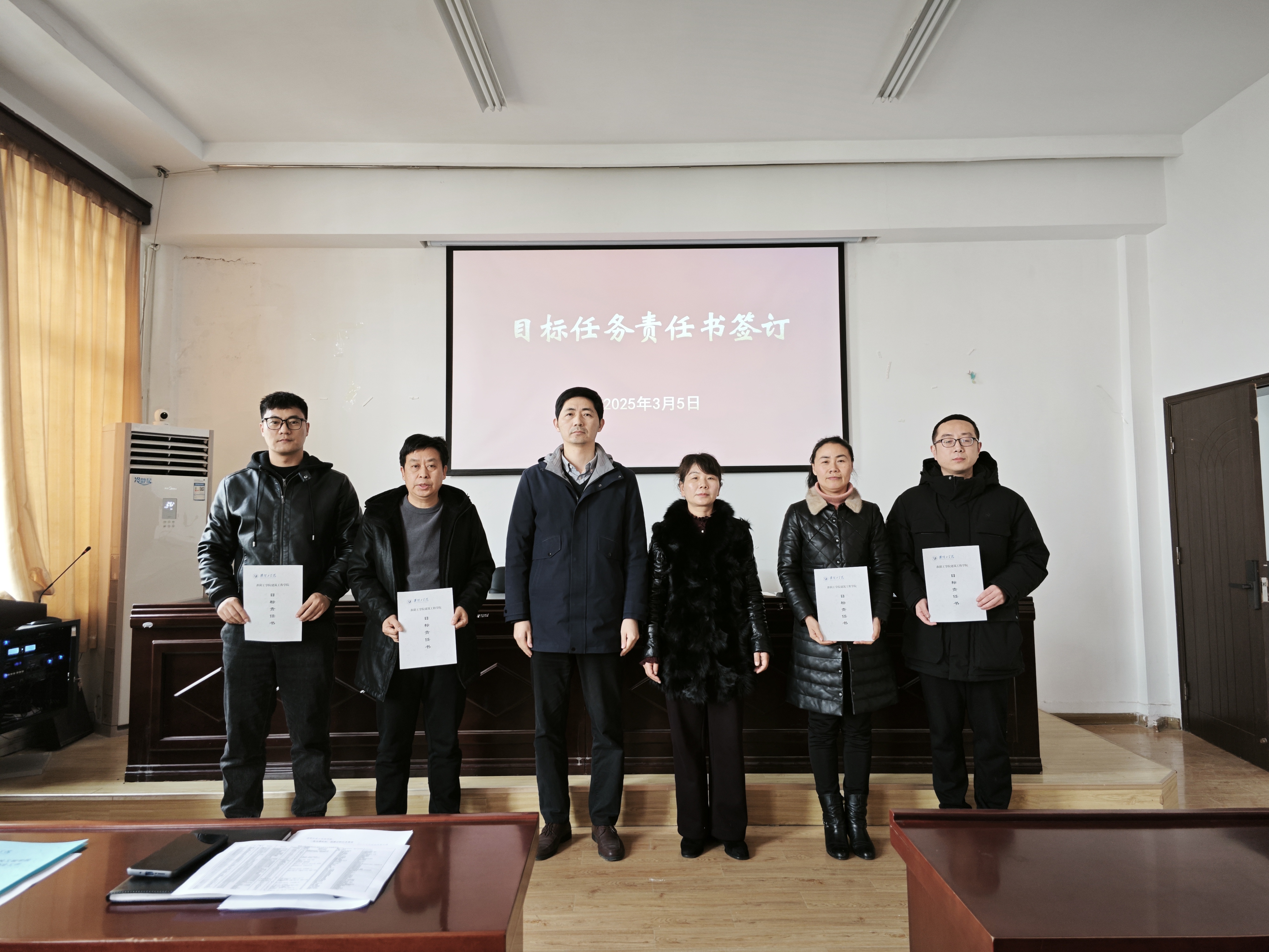 党委书记夏雪芹、经理陈亚东与分管领导以及建筑系、土木系分别签订了2025年度目标管理责任书。