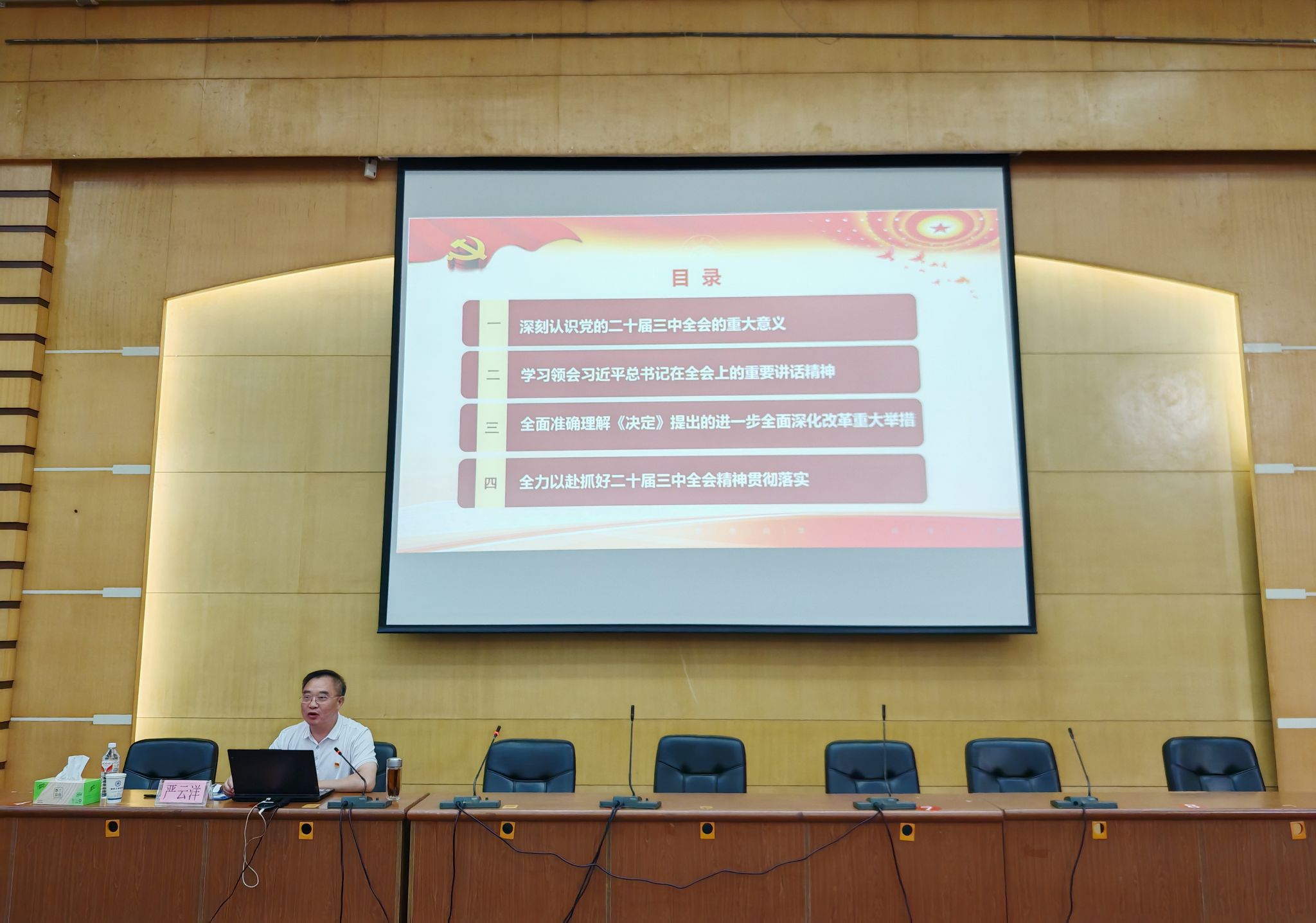 严云洋从深刻认识党的二十届三中全会的重大意义、学习领会习近平总书记在全会上的重要讲话精神、全面准确理解《决定》提出的进一步全面深化改革重大举措、全力以赴抓好二十届三中全会精神贯彻落实等四个方面,对全会精神做了全面宣讲和深入阐释。