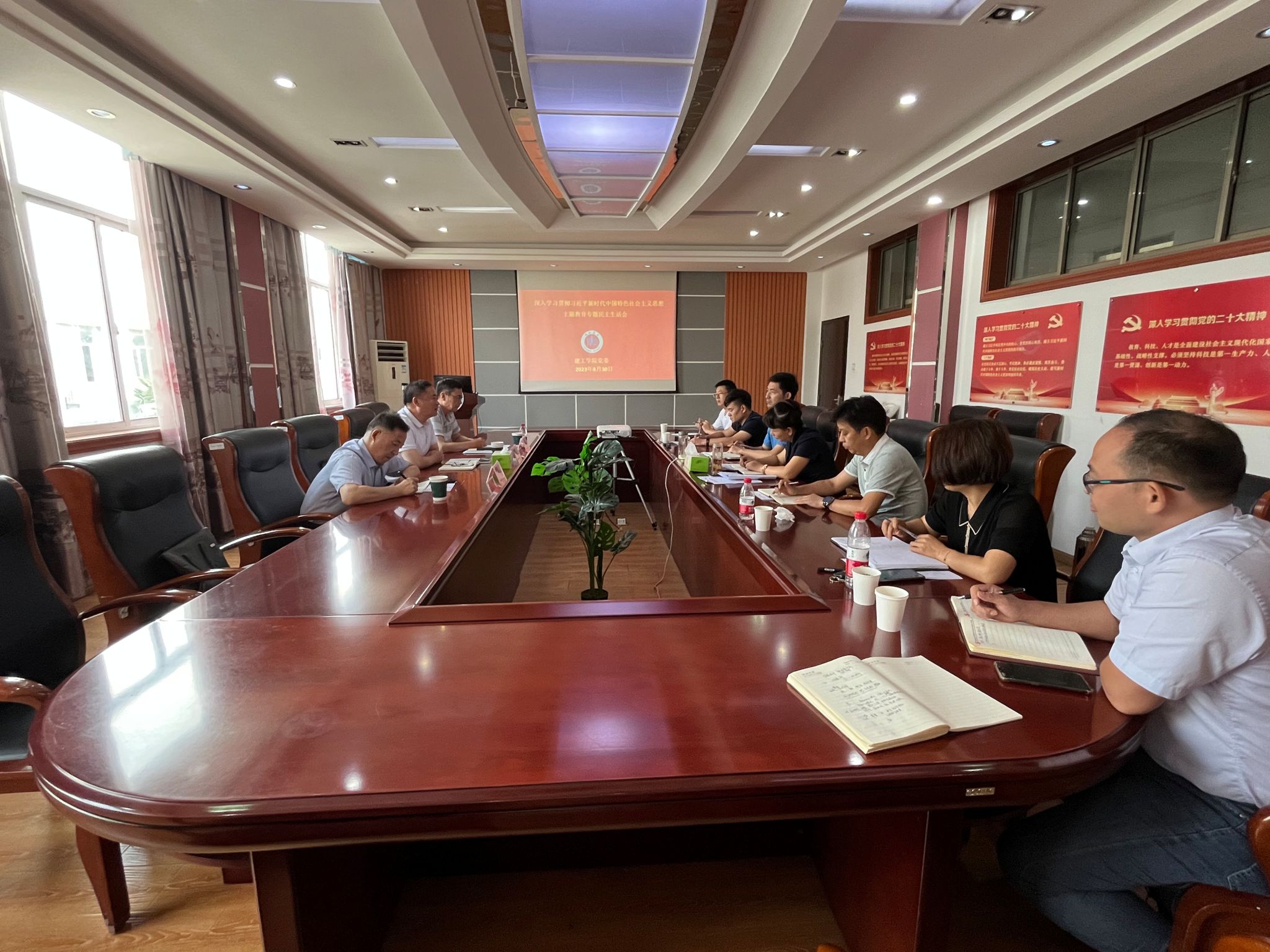2023年8月30日上午9:00,公司党委在北京路品学楼3316会议室召开学习贯彻习近平新时代中国特色社会主义思想主题教育专题民主生活会,公司党委常委、副董事长严云洋莅会指导并讲话,校主题教育第五督导组周志国、许东风,公司党委领导班子全体成员参加了会议,公司经理助理孙华圣列席会议,会议由公司党委书记夏雪芹主持。