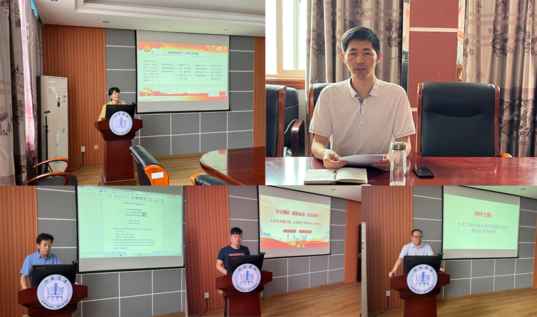 会上,公司党委书记夏雪芹带头作汇报,她在前期开展的教师、员工座谈,走访调研等基础上,以《切实加强党建品牌建设,扎实推进一融双高》为题,提出目前公司党建品牌建设中面临的问题,并针对问题提出了党建品牌建设一步的工作举措,积极探索“党建+”模式,推进党建与业务融合,引领公司事业高质量发展;公司经理陈亚东以《特色与内涵并举,加快推动公司高质量发展》为题,副经理周潮、彭宁波、经理助理孙华圣分别就教学、科研、土木专业发展等方面开展调研汇报工作。系部主任和教师支部代表结合系部、支部工作情况进行了汇报和讨论。