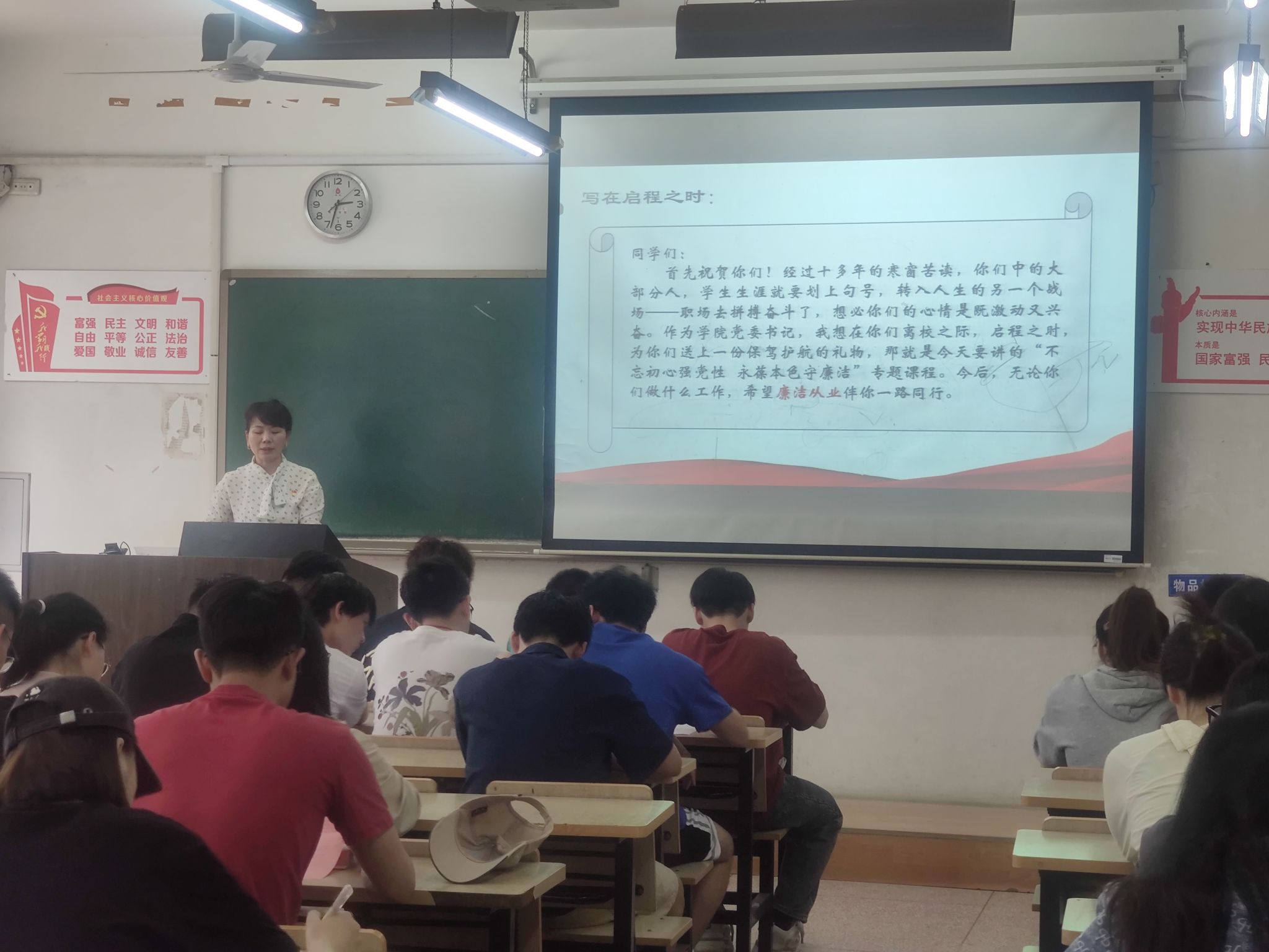 全体毕业生党员集中观看了《年轻人,人生第一次,你会怎么选?》《年轻有为莫妄为》短视频,深刻认识廉洁自律重要性,追逐梦想,廉洁护航。