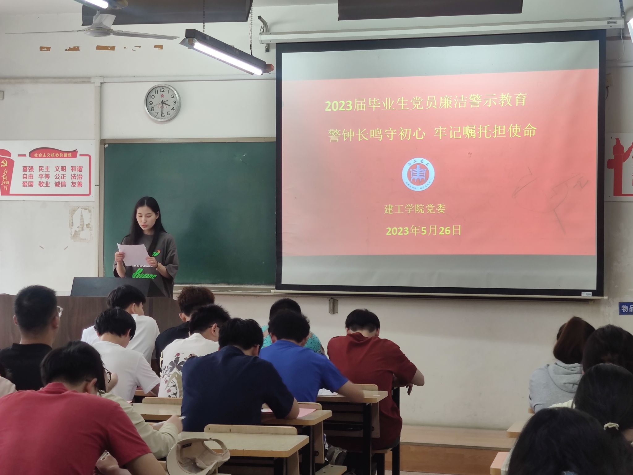 为增强毕业生党员的党性意识和廉洁自律意识,2023年5月26日下午,云顶国际8588yd在尚学楼B203开展“警钟长鸣守初心,牢记嘱托担使命”廉洁教育活动,全体毕业生党员参加本次活动。