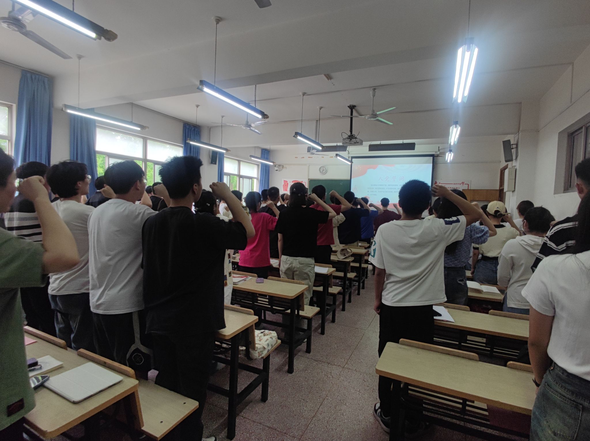 活动伊始,毕业生党员代表夏添领誓,带领全体毕业生党员重温入党誓词,庄严宣誓:“我志愿加入中国共产党,拥护党的纲领,遵守党的章程……”入党誓词声声震耳,坚定信念牢筑于心。