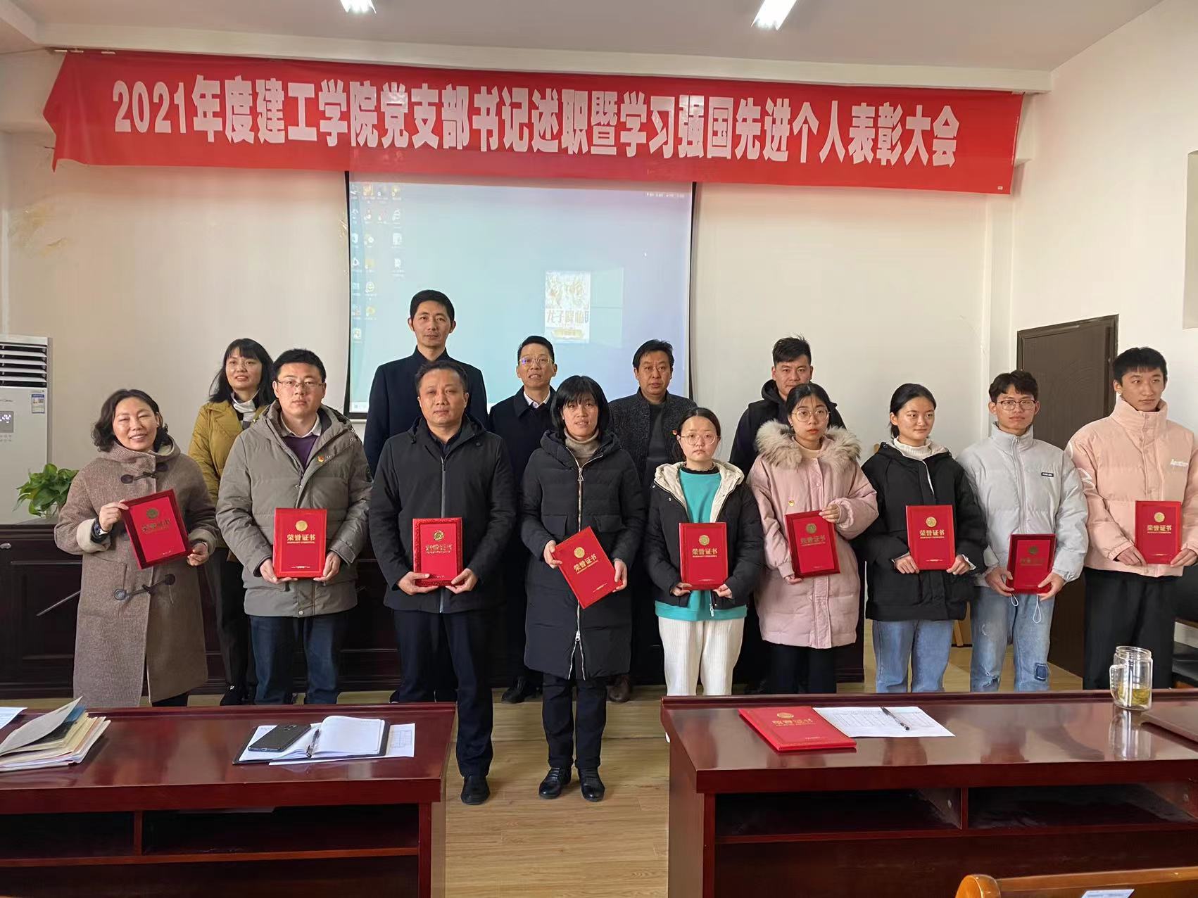 根据校组织部《关于开展2021年度党的建设考核和二级党组织书记抓党建述职评议考核工作的通知》要求,2021年12月15日上午8点30分,建工公司党委2021年度党支部书记述职暨学习强国先进个人表彰大会在在品学楼3304报告厅举行,公司全体师生党员参加本次活动,活动由公司党委书记陈亚东主持。
