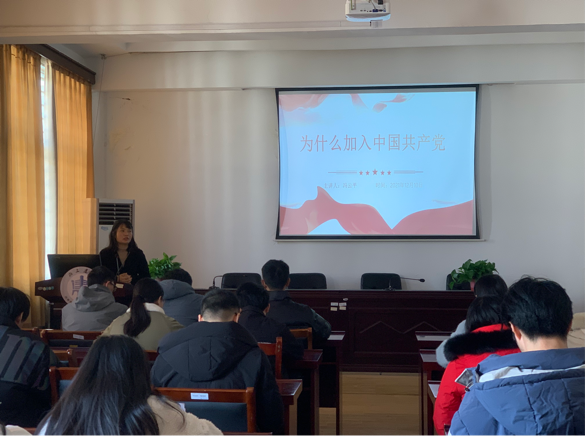 2021年12月10日12点30分,2021年度第二期入党积极分子培训第五讲在品学楼3304进行,本次培训课程由建工公司党委副书记、副经理冯云平老师主讲,党课主题为《为什么要加入中国共产党》,入党积极分子参加了本次学习活动。