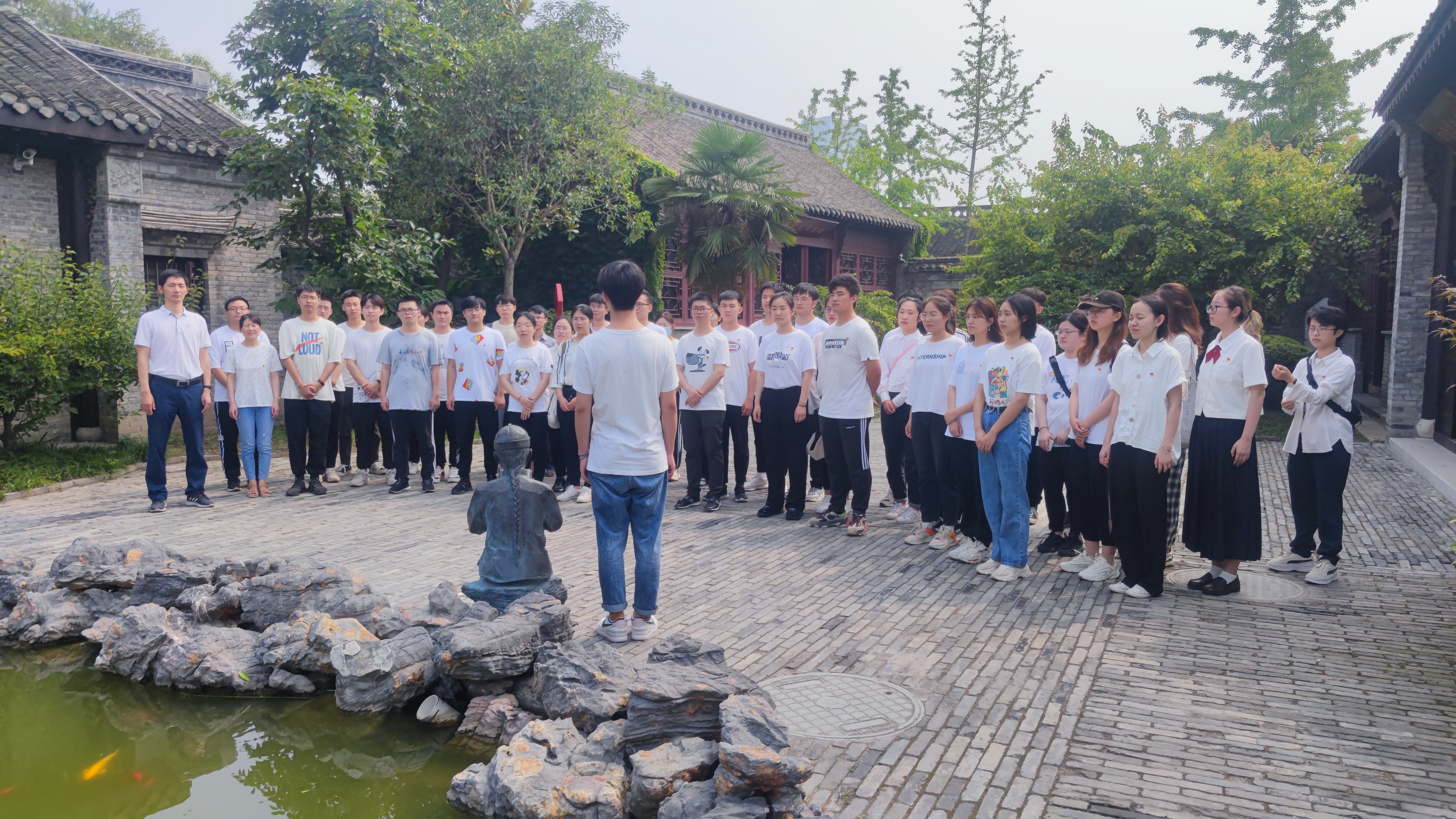 在陈家花园私塾馆前,陈亚东书记勉励员工党员强化理论学习,深入学习周恩来“六个杰出楷模”精神,将红色基因融入血脉,筑牢信仰之基,坚定前进信心,以青春砥砺奋进新征程。