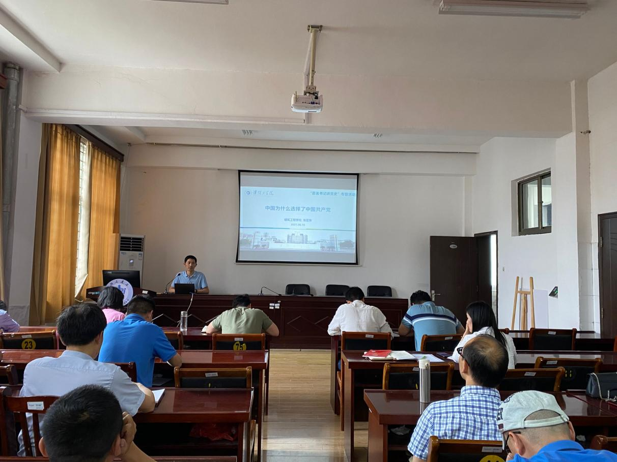 2021年6月16日下午2点,建工公司党委书记陈亚东在公司3304报告厅讲解作题为《中国为什么选择了中国共产党》专题党课,云顶国际8588yd全体教师参加本次党史学习教育。