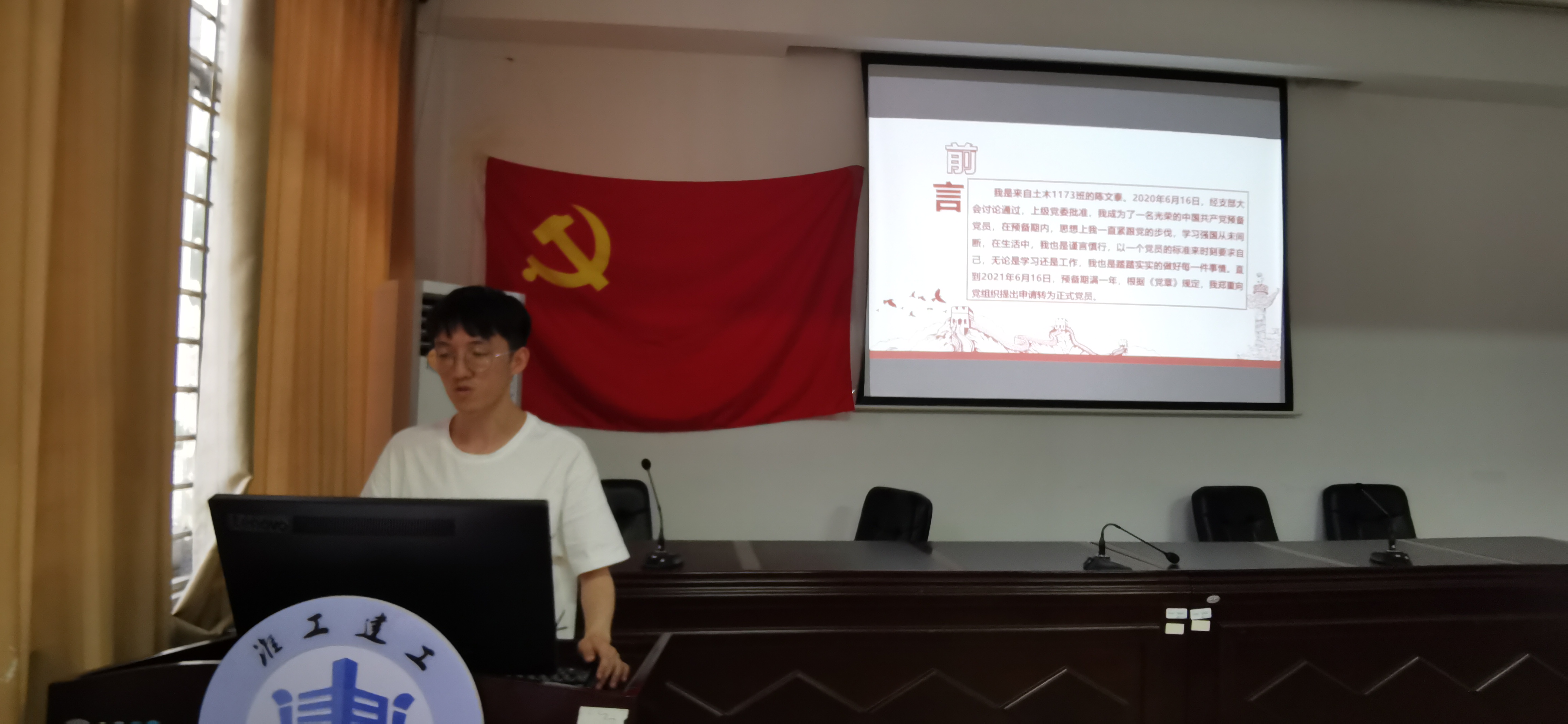 首先,张涵老师宣读了整个会议的流程,按照党员转正程序,由待转正的预备党员依次进行PPT演讲答辩,介绍自己一年预备期以来个人的思想、工作情况。