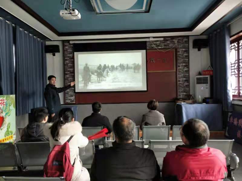 在车桥战役影视厅,全国党建工作样板支部、教师行党政支部陈亚东博士从战役背景、战役意义、战前准备、战役过程、战役伤亡多方面讲述车桥战役实景党课,追溯红色记忆,感悟先烈精神。