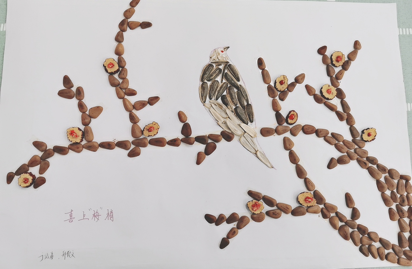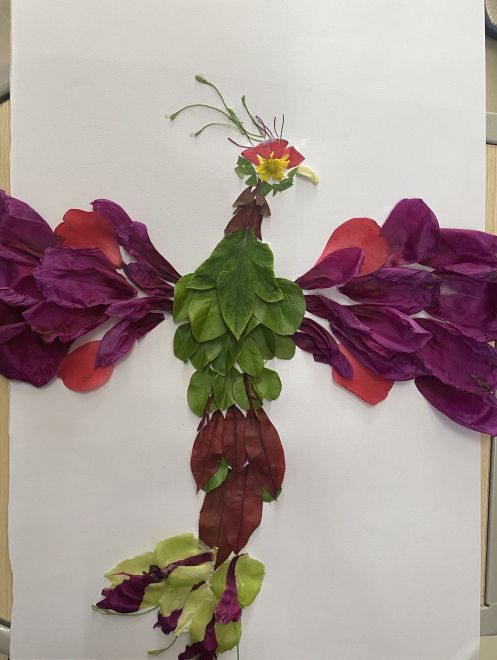 活动中,同学们利用周围熟悉的物品,尽情发挥自己的想象力,创作出了一件件富有创造力的作品,松子壳做成的喜鹊、粘土捏成的海棠花、树叶和花瓣拼成的凤凰……形态逼真、活灵活现,带来了夏天的气息,展现着淮工学子的朝气蓬勃。