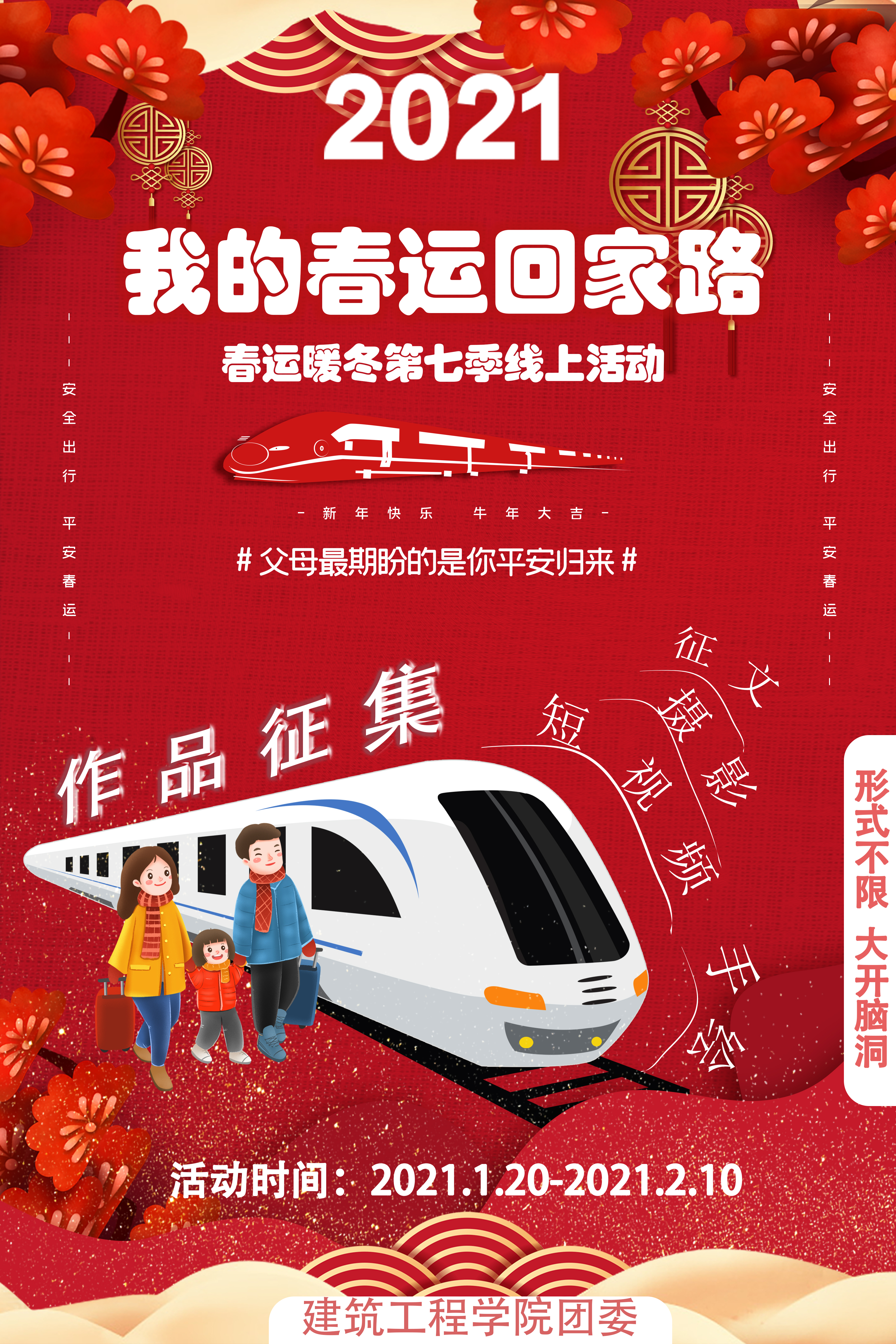 “年年岁岁花相似,岁岁年年人不同”,春运每年都会有,但每年的春运又不尽相同。对于中国人来说,春运不仅是一次出行,更意味着团圆、思念、亲情和企盼。春运进阶史就是中国发展的历史缩影,为了追寻春运变迁的轨迹,见证改革发展的步伐,云顶国际8588yd于2021年1月20日至2月5日开展了“我的春运回家路”春运暖冬第七季线上活动。