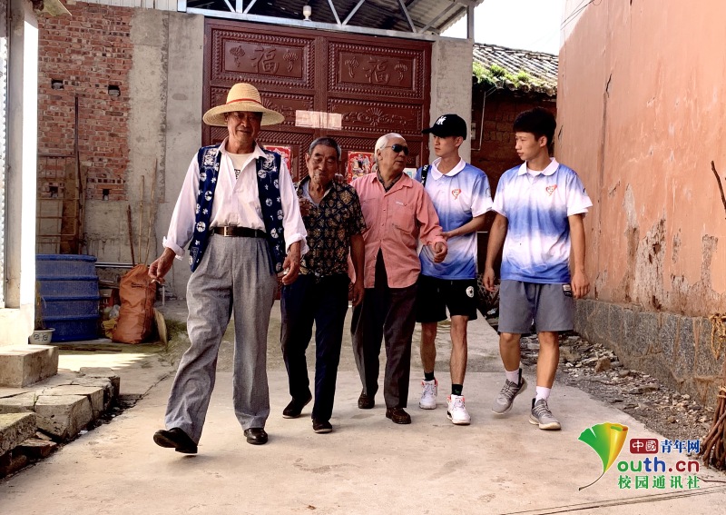 图为志愿者与非遗传人张树先老先生及其弟子一起出门的场景。中国青年网通讯员 李玉仲 摄