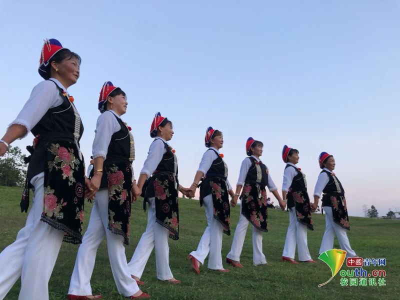 图为大理鹤庆白族阿姨身着白族特色服饰正在跳舞 。中国青年网通讯员 李玉仲 摄