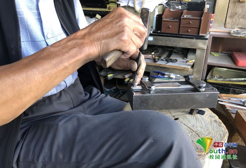 图为非遗银器传承人段先生正在制作银器。中国青年网通讯员 李玉仲 摄