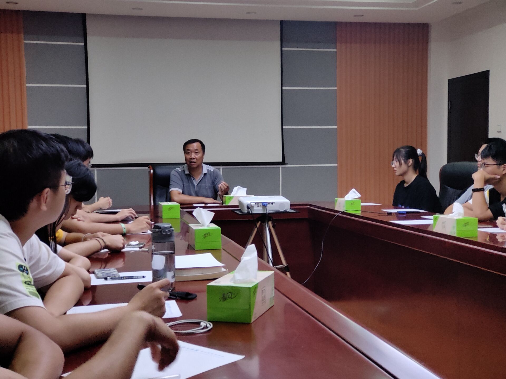 第一期由学工办主任冯云平主讲,冯老师主要从新生报到前、报到时及报道后的注意事项做了具体要求。报到前,提醒新生更新淮上通,确保健康码是绿码,中高风险地区同学暂不返校,14天内接触过高风险地区人的同学需要做核酸检测,核酸检测为阴性方可返校;报到时,每位班助需要核对新生的身份信息,对于未报到而又联系不上的新生需及时向辅导员反馈,做好新生报到的核验工作;报道后,需要告知新生公司疫情防控期间的管理制度,每天需要在系统填报体温情况,如果生活用品未带齐全,可以从公司统一购买,物品的整齐划一也有利于后期宿舍评比。公司实行错峰就餐,每位新生都要在公司食堂就餐,不允许点外卖。