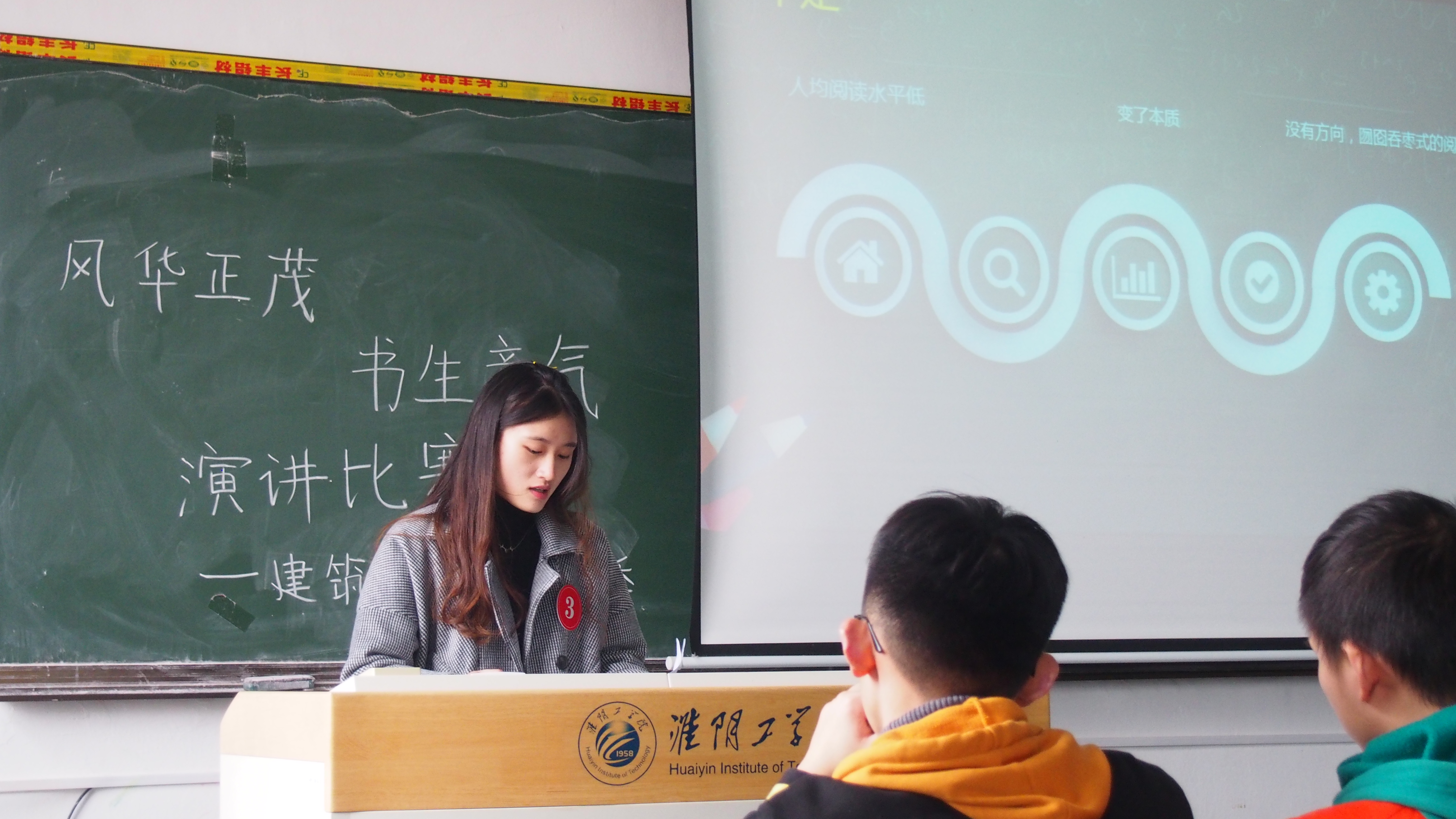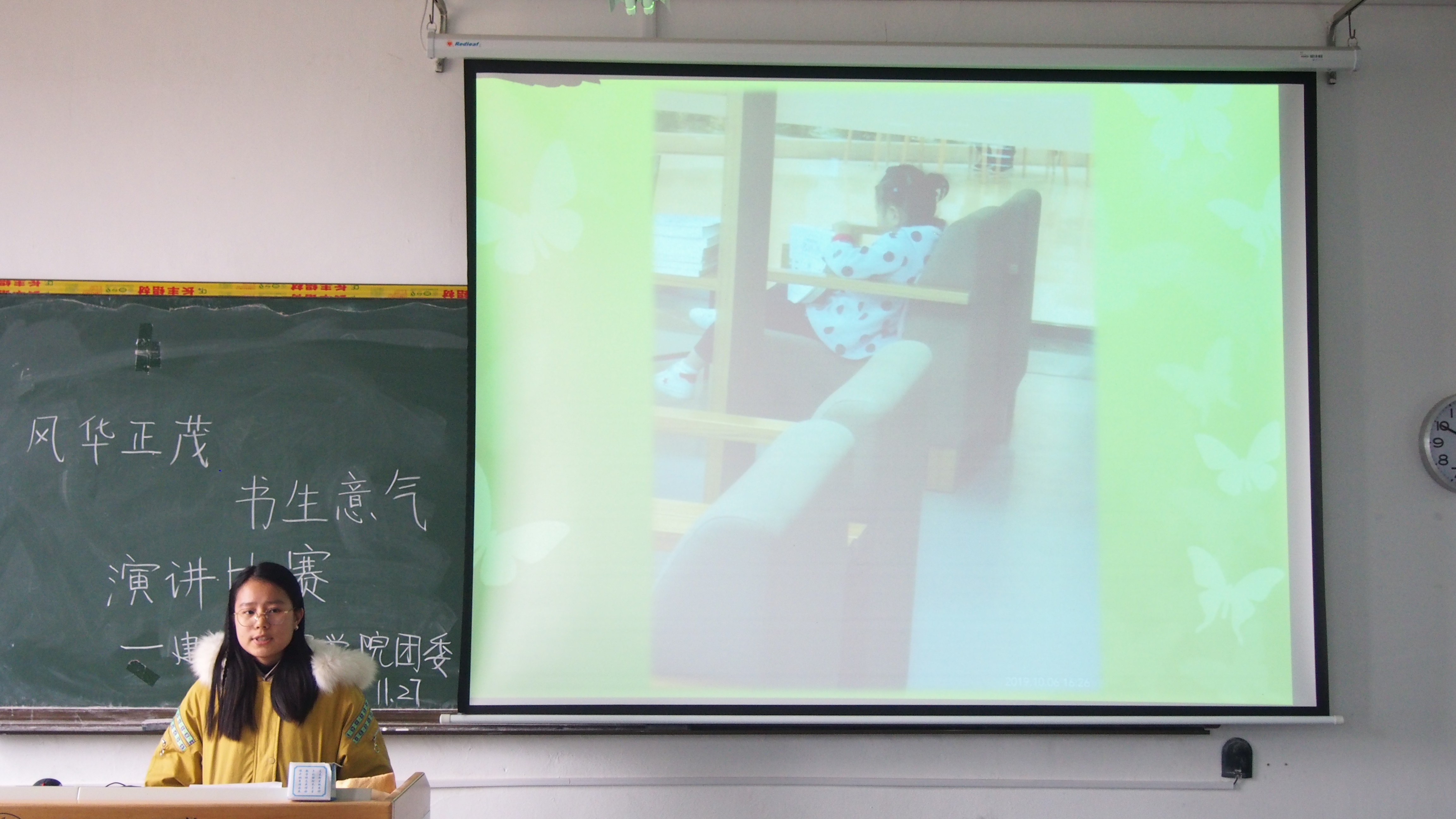 选手们以演讲与PPT兼容的方式围绕读书这一话题引经据典,声情并茂地向我们讲述读书体会,分享读书感悟,抒发读书中的无穷乐趣,给我们带来了一场视觉和听觉的盛宴。他们述说时的神情和那铿锵有力的话语充分展示了他们对读书的酷爱与激情,不仅为我们拓宽了视野还鼓舞我们养成读书的好习惯。