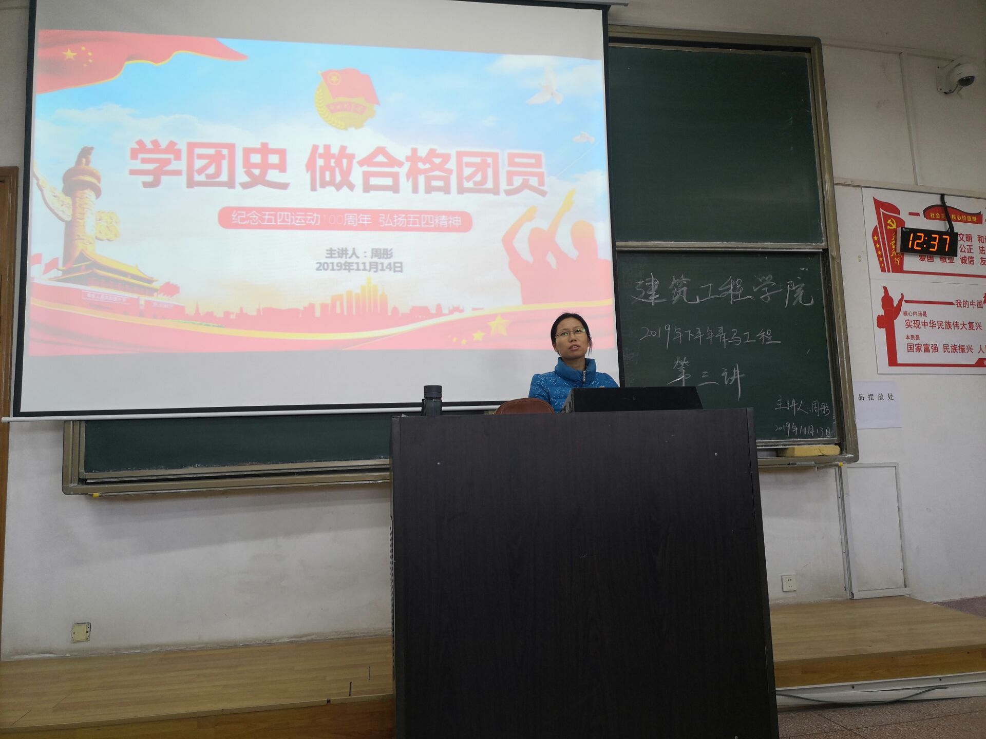在室内课的学习过程中,韩书记围绕“初心”与“使命”两大主题,分为四个部分展开叙述。他提出,团员青年应当明确了解社会主义核心价值观内容,指出新时代和新任务是当代青年老员工勇挑重担、担当使命的现实需要,并提出五种学习方式、五个不忘初心、牢记使命的七字目的与要求,要求学员们不该忘记自己的初心与使命。顾向阳老师以“学深悟透习近平新时代中国特色社会主义思想”为主题,分别阐述了习近平新时代中国特色社会主义思想的核心内容,即“八个明确、十四个坚持”的具体内容和深刻内涵。讲述了习近平总书记治国思想的历史起点、发展脉络以及守正创新,以此呼吁学员们爱国爱党、艰苦奋斗,争做有道德、有思想的社会主义新青年。周彤老师以“学团史,做合格团员”为主题,阐述了团的两个历史事件的具体内容和深刻内涵,以此来激励在座的每个位同学,要主动学习团史,明确团员责任,勇担时代重任。冯云平老师以“如何念好员工干部工作的“三字经””为主题,从“三动”、“三自”、“三贵”、“三有” 四个方面讲述,期望学员们通过大学四年直达青春高度,用理想的旗帜标注民族复兴与青年奋斗,青年为实现中华民族伟大复兴目标的贡献度。