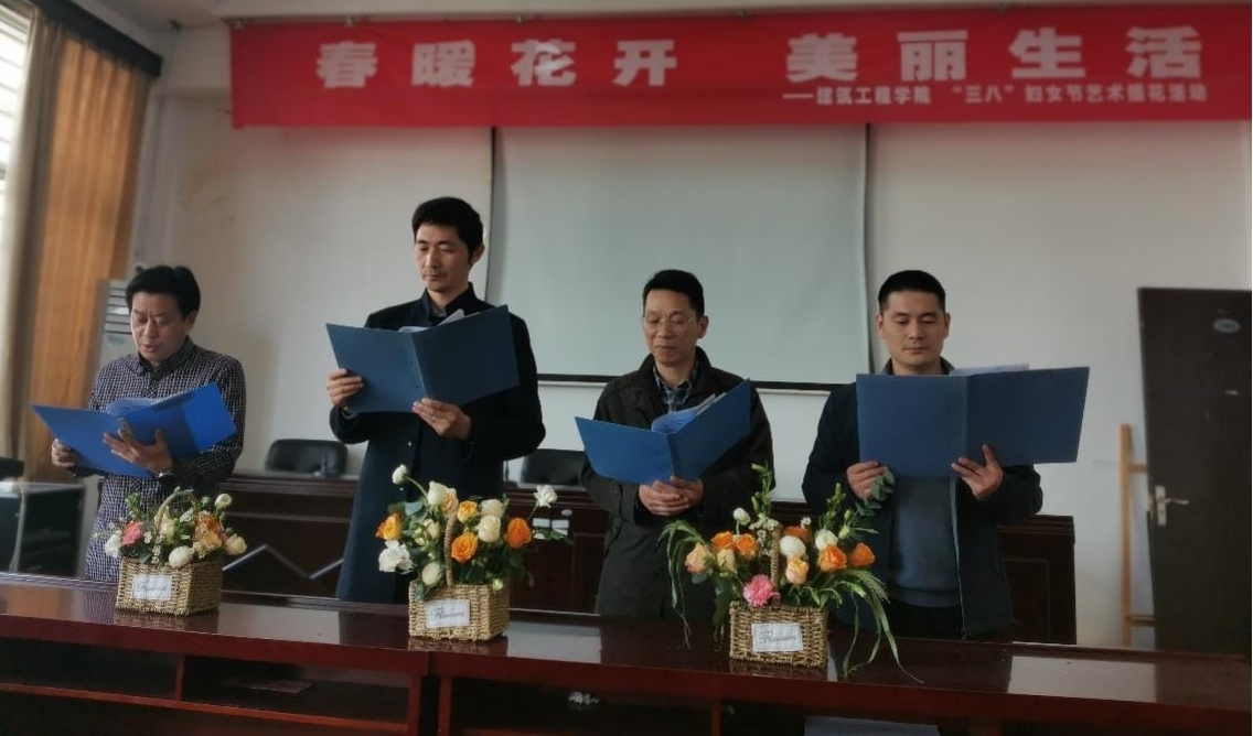 公司领导班子成员陈亚东书记、董云经理、周潮副经理、彭宁波副经理,给各位女神带来诗朗诵《三月里款款走来的女子》。