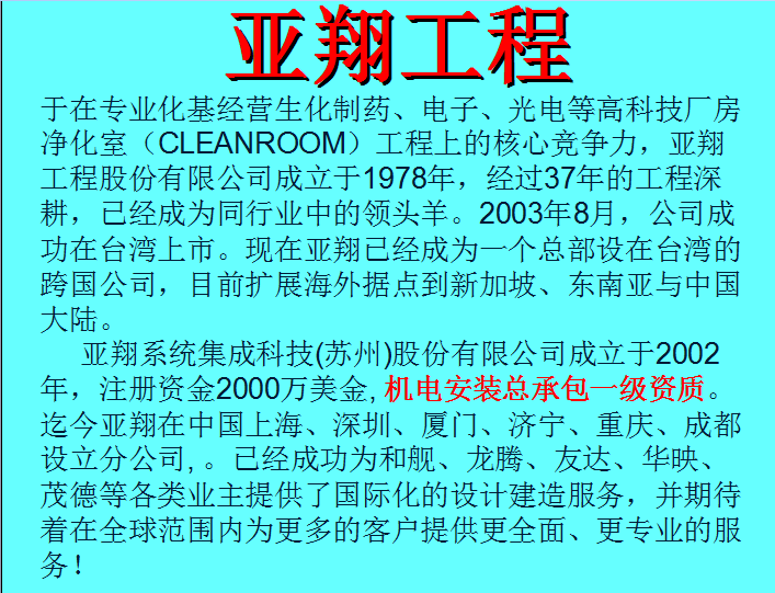 亚翔系统集成科技(苏州)股份有限公司招聘