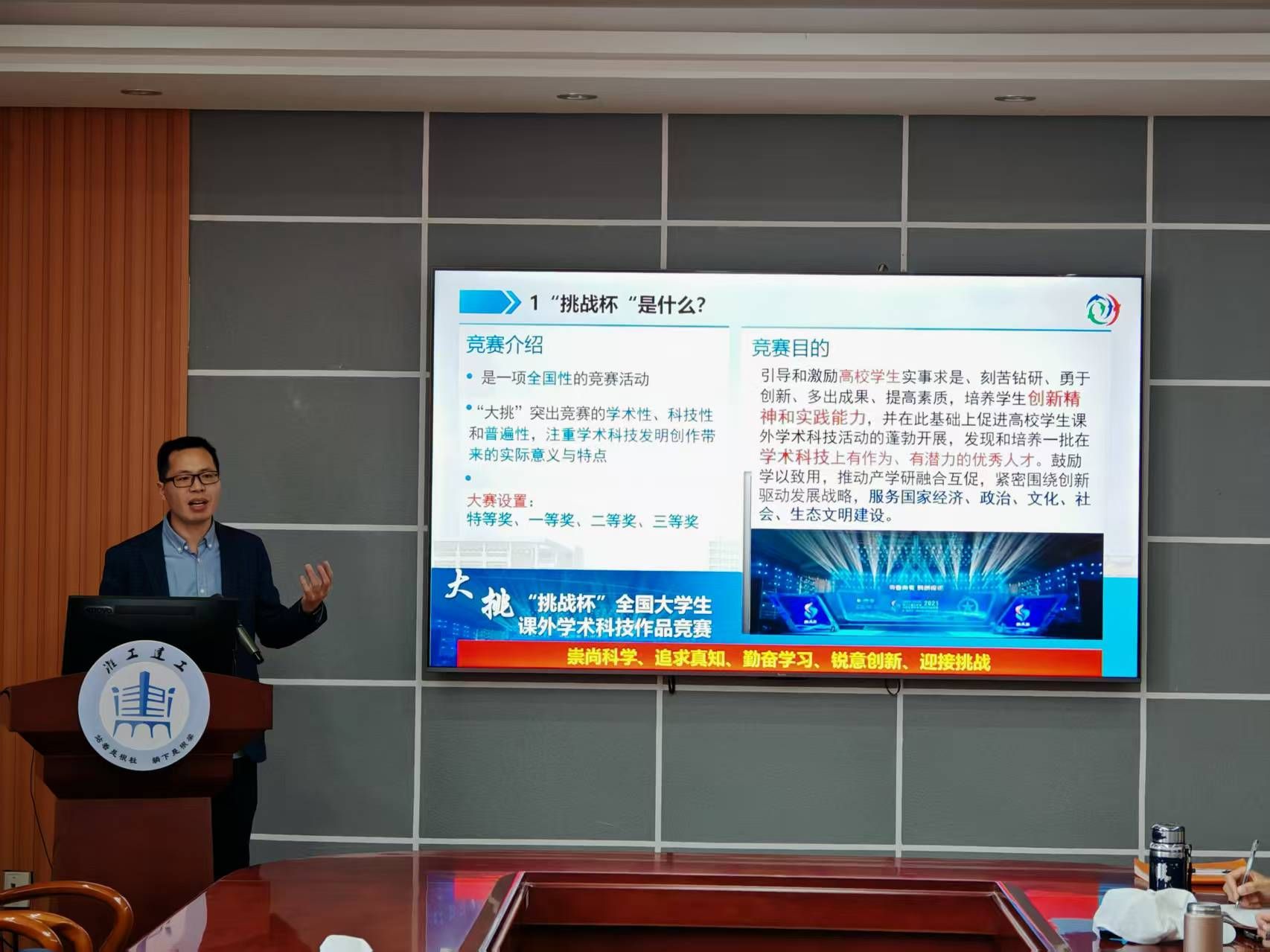 培训会上,张永成结合自身丰富的赛事组织与评审经验,围绕“挑战杯”赛事的核心宗旨、最新动态、评审规则以及备赛关键环节进行了深入解读。他系统梳理了项目选题策略,强调选题需立足国家战略需求与学科前沿,兼具创新性、可行性与应用价值;详细剖析了项目申报书撰写、调研方法、成果凝练及现场答辩展示等环节的核心要点与常见误区,为师生们提供了清晰的备赛路线图。张永成还特别鼓励在座的年轻博士们发挥科研优势,积极指导本科生团队,促进科研成果向竞赛项目的有效转化,形成师生共创的良好局面。