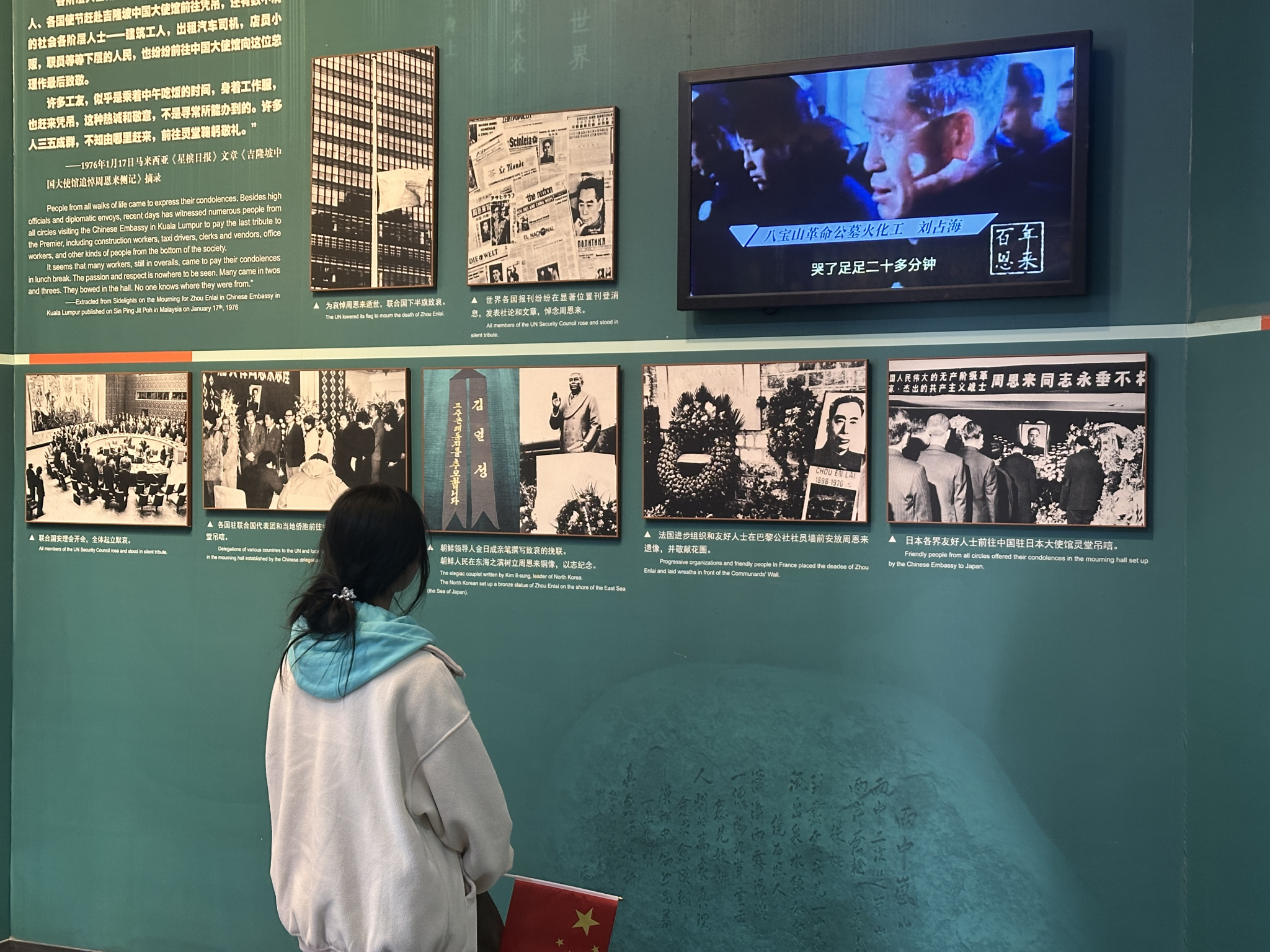 周恩来纪念馆内陈列的珍贵史料与影像,生动展现了周恩来总理为党和人民事业鞠躬尽瘁的一生。同学们驻足于“海棠依旧忆伟人”展区前,聆听讲解员讲述周恩来与邓颖超的革命故事,感受他们“吾辈自强担使命”的家国情怀。周恩来总理的严谨作风、奉献精神与为民初心,为新时代青年树立了不朽的榜样。