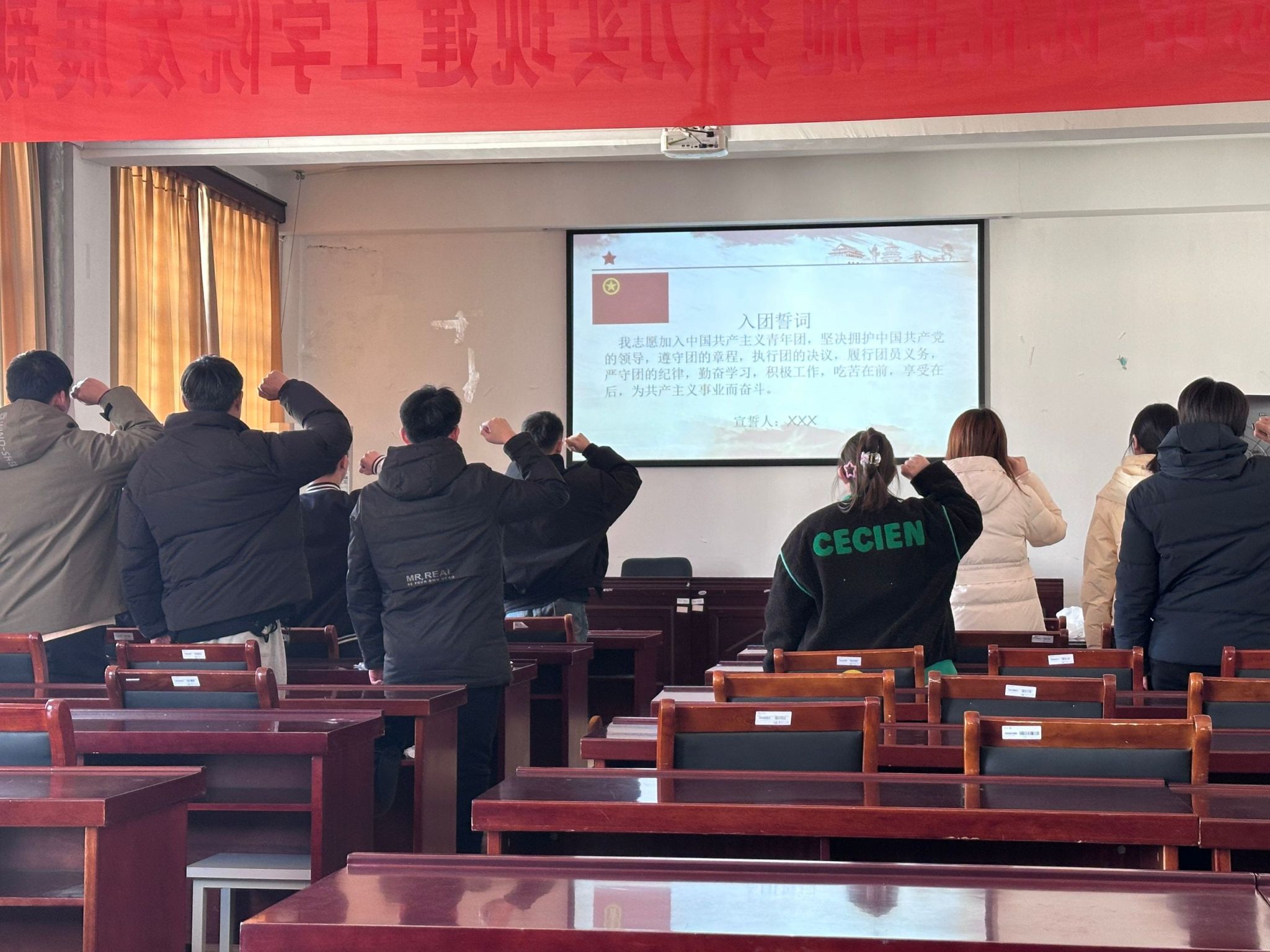 随后,施彦含带领新团员进行入团宣誓。新团员们面向团旗,举起右拳,郑重宣誓。坚定的誓言表达了他们对团组织的无限向往和为团组织增光添彩的豪迈激情。