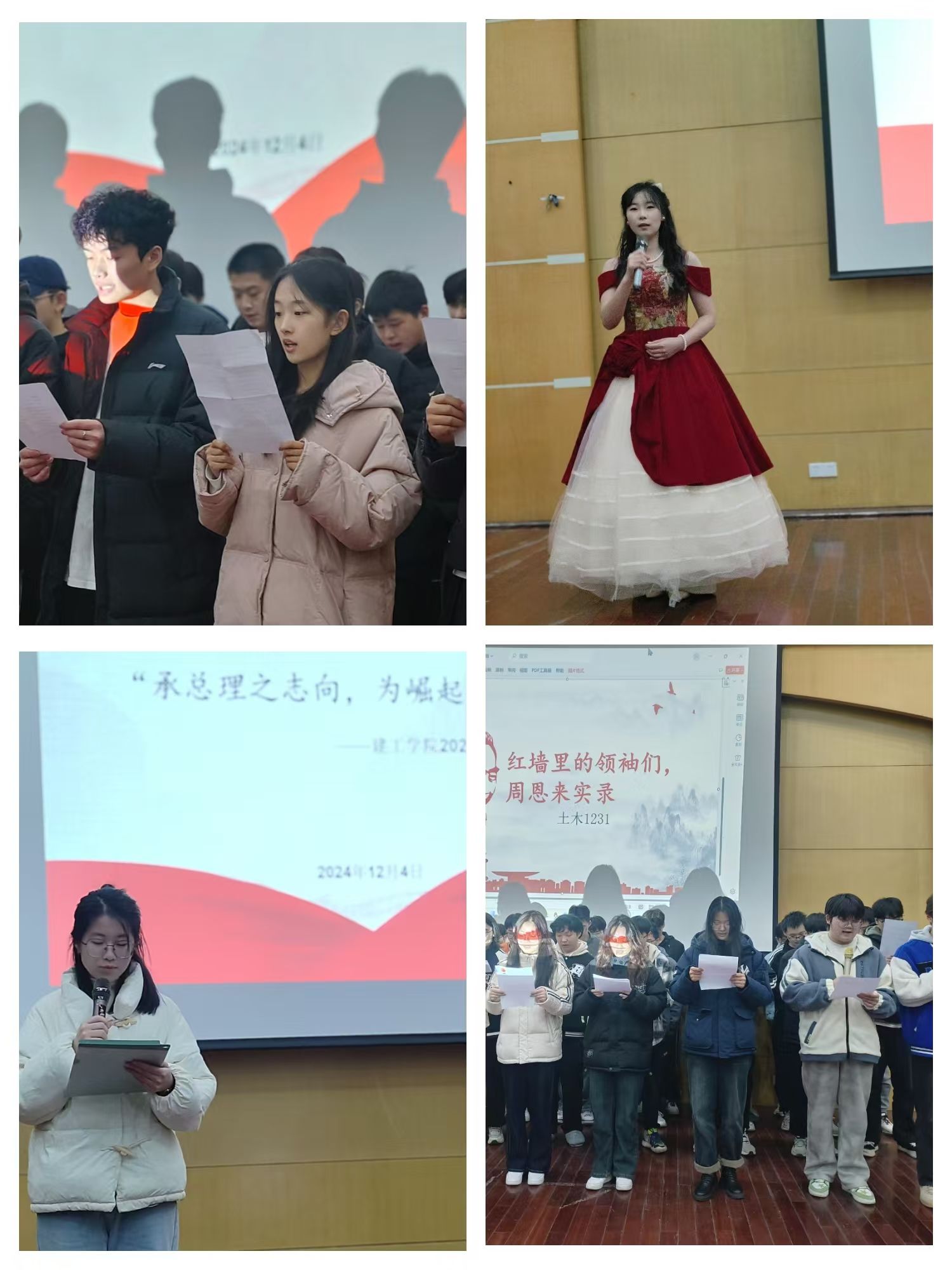 活动分为“经典重现”与“经典传颂”两大环节。“经典重现”环节,每两个班携手合作,选取书籍中的经典场景进行舞台剧复演,并巧妙结合创意改编,重现历史画卷。舞台上,同学们全身心投入,通过细腻的表演、生动的对话将周恩来总理等先辈们的英勇事迹鲜活地呈现在观众眼前。“经典传颂”环节,同学们从众多经典篇章中精挑细选,以深情朗诵抒发对先辈的缅怀与敬仰,将经典片段中的情感与力量展现得淋漓尽致。