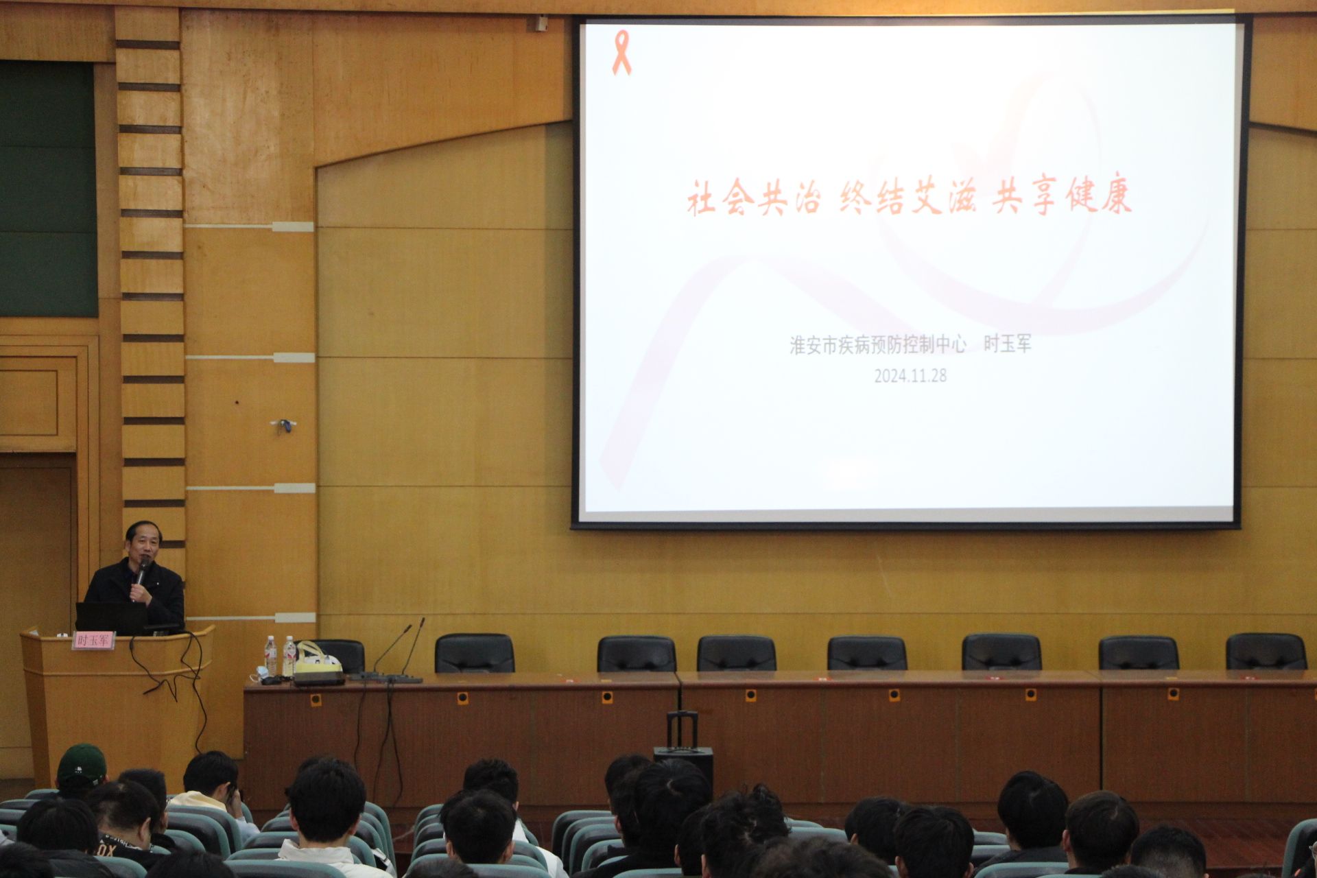 为增进老员工对艾滋病的认识,加强员工的自我防范和保护意识,云顶国际8588yd在第三十七个“世界艾滋病日”来临之际,于11月29日在北京路校区主楼报告厅开展以“社会共治,终结艾滋,共享健康”为主题的防艾主题讲座。淮安市疾病预防控制中心性病艾滋病防治科科长时玉军进行科普讲解,2022级员工及部分2024级员工参与此次讲座。