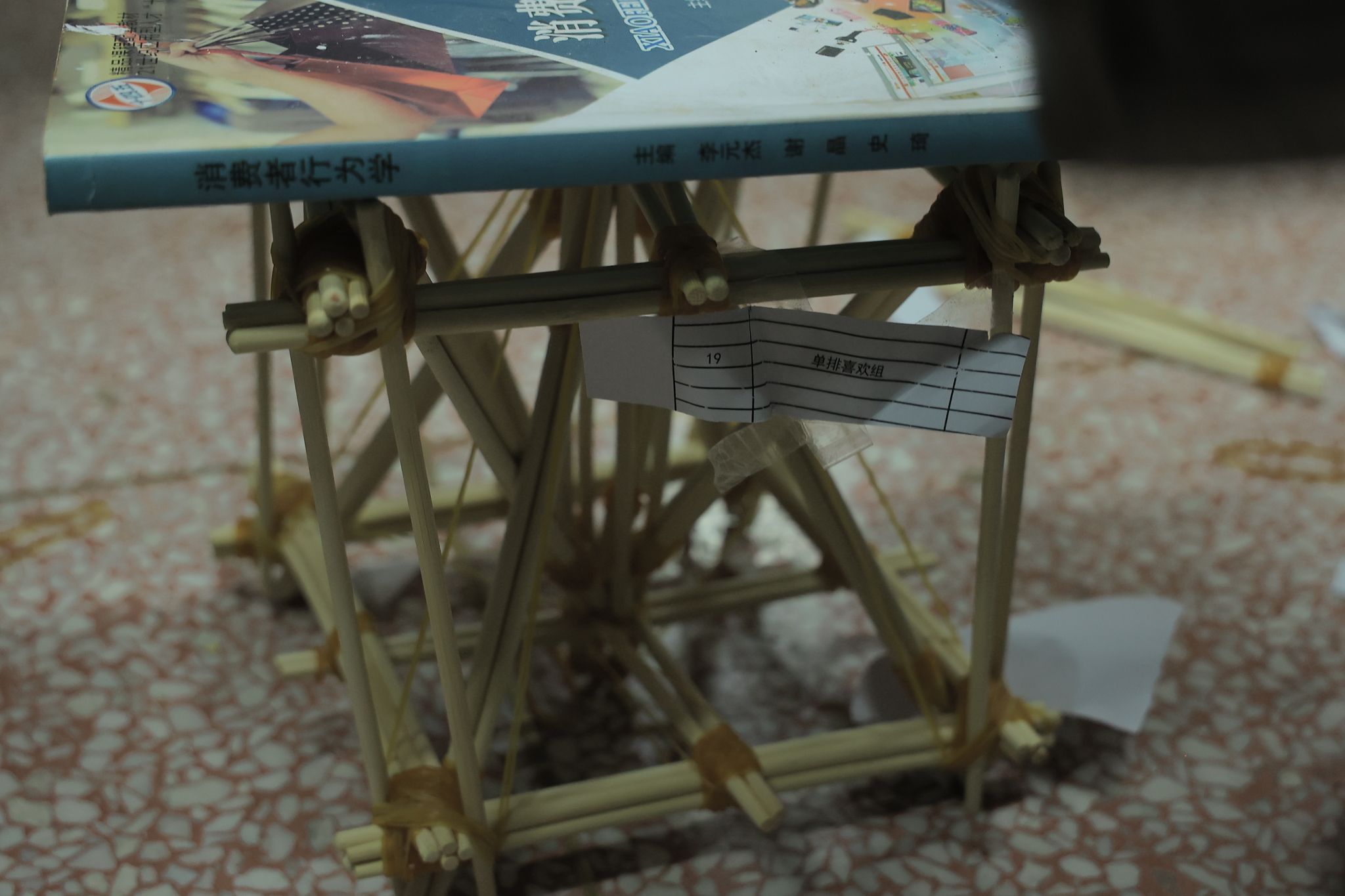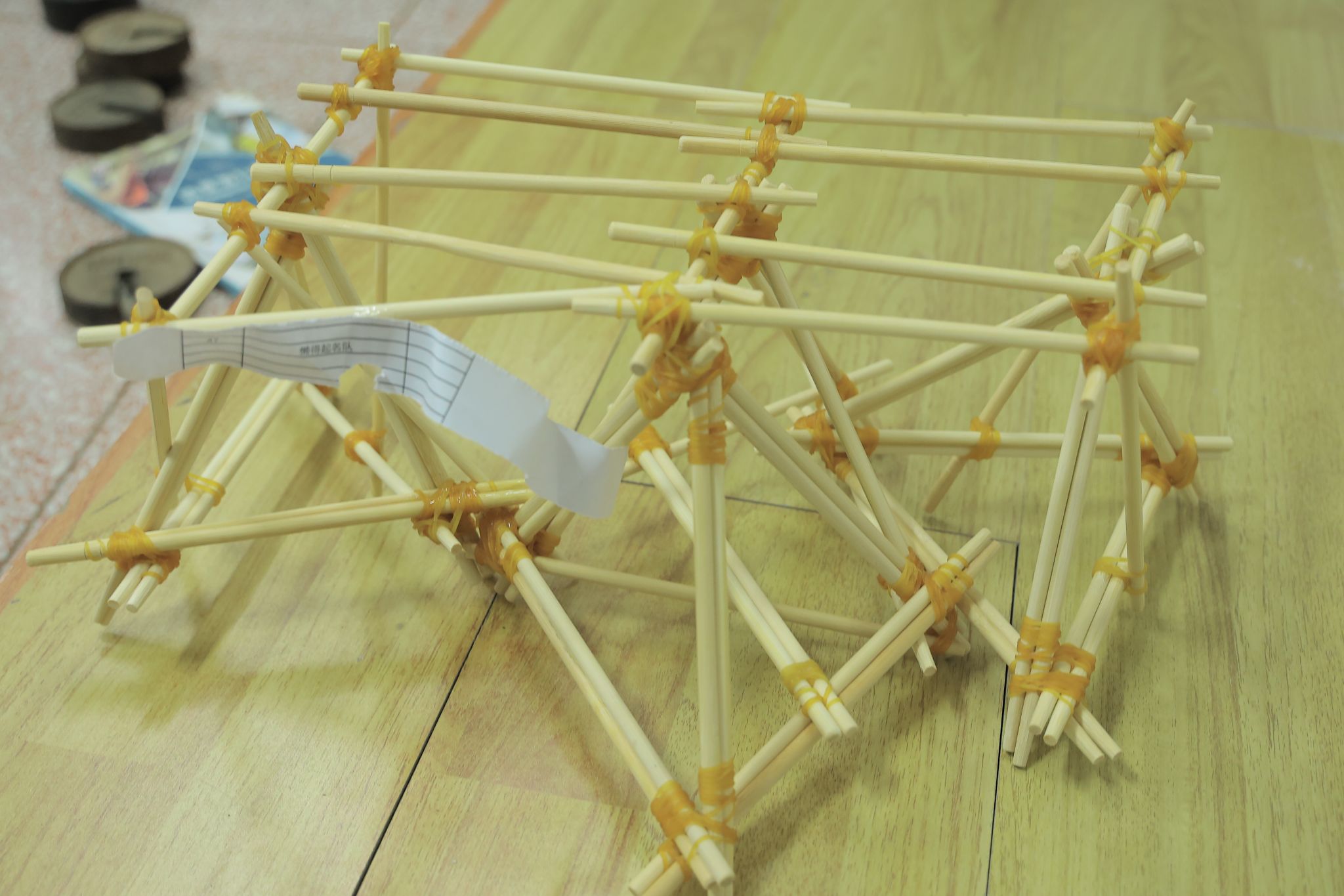 随着比赛的开始,各小队迅速投入到紧张而激烈的搭建过程中。同学们充分发挥自己的想象力和创造力,用60根筷子和90个橡皮筋搭建出一座座形态各异、创意十足的筷子桥。经过一个多小时的激烈角逐,一座座精美的筷子桥终于呈现在大家面前。为了检验桥梁的稳固性和承重能力,评委们对每座桥梁进行了承重测试。最终,经过评委们的认真评选,选出了一、二、三等奖。
