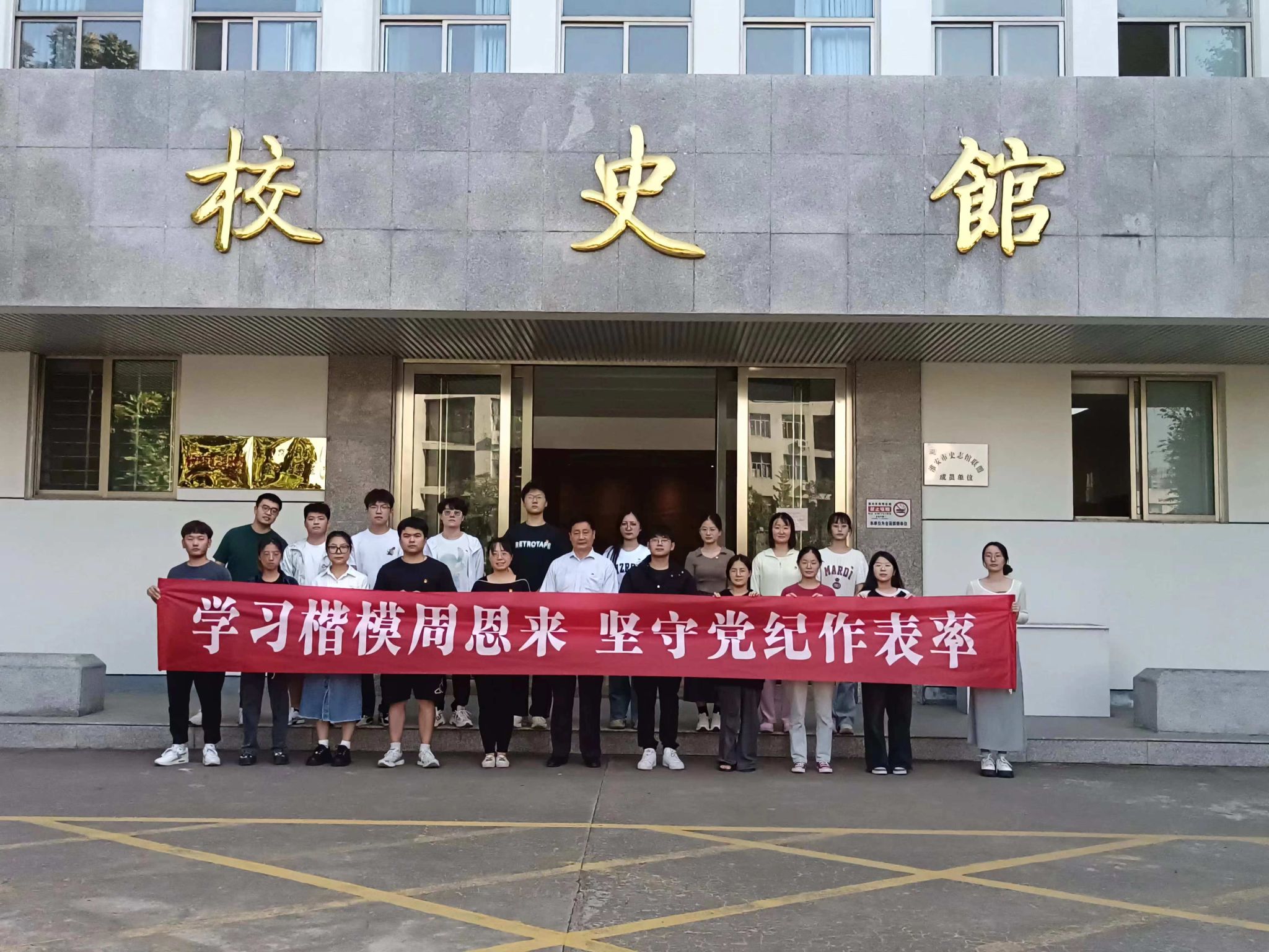张乃钟结合校史馆内容给师生党员开展实境教育,围绕党纪学习教育主题,对党员同志提出具体要求,不断学习周恩来总理的崇高精神品质,感悟周恩来总理完美人格风范魅力,以周总理为镜,时刻反省自己的言行,做到心有所畏、言有所戒、行有所止。教师行政党支部书记刘畅表示,学习楷模周恩来,要真正做到政治信仰不变、政治立场不偏、政治方向不移,主动担当作为。
