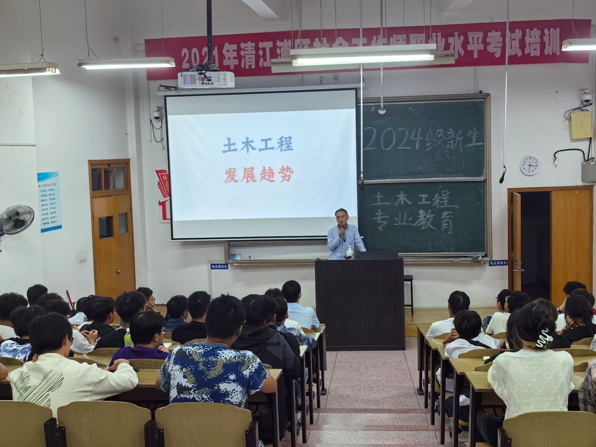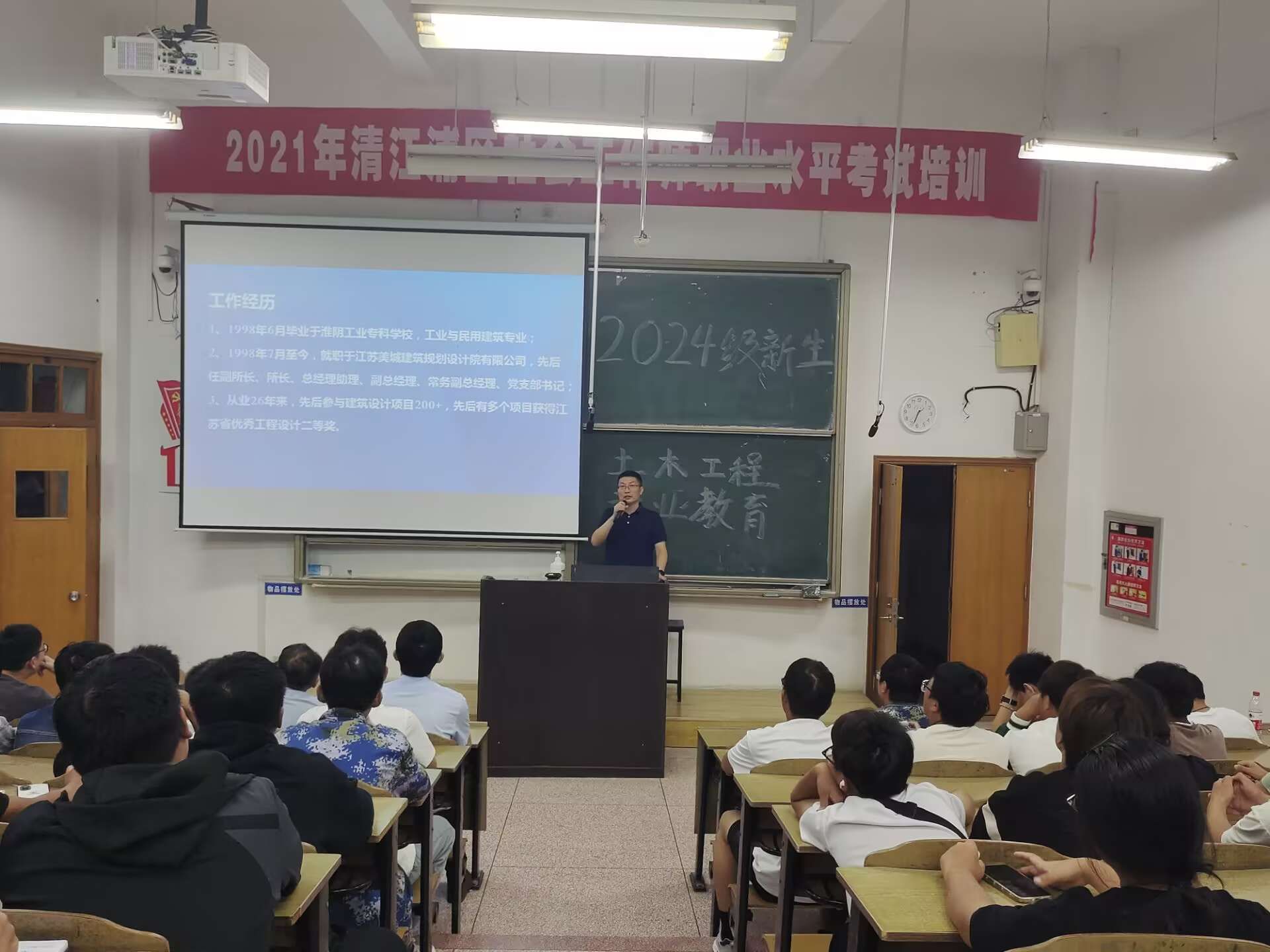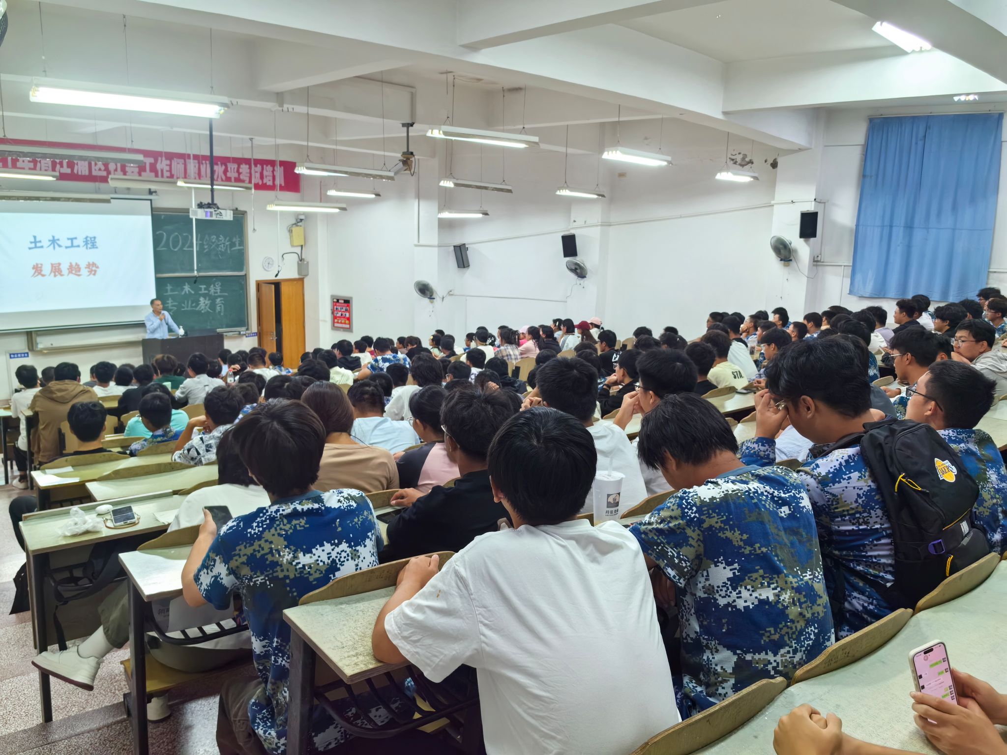 张博士讲述了土木的含义与历史,并对土木工程专业的发展与公司团队队伍进行详细介绍。佘教授围绕土木工程的发展趋势、过去与未来、现阶段面对的困难与前景等方面进行讲解。何教授用幽默的语言对土木工程专业的未来做出了评价,为同学们树立了专业信心。江苏美城建筑规划设计院有限公司常务副总经理陈士军借助两个案例给同学们提出了宝贵的建议。现就业于淮安交通局的2024届毕业生王涛结合自身经历,希望学弟学妹做一个合理的大学规划。