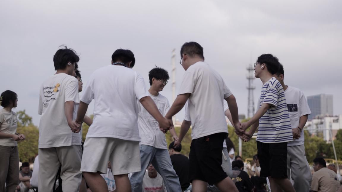 小组成员手拉手围成一圈,记住左右手相握的人,然后随意走动,找到原来相握的人并握住,形成一个错综复杂的“手链”,在不松手的情况下解开。让萌新们认识到同学之间也会有磕磕绊绊,也会有闹别扭的时候,只有开诚布公,互相袒露心声,才可以让大家之间的“结”打开理顺,再次团结一心向前冲。