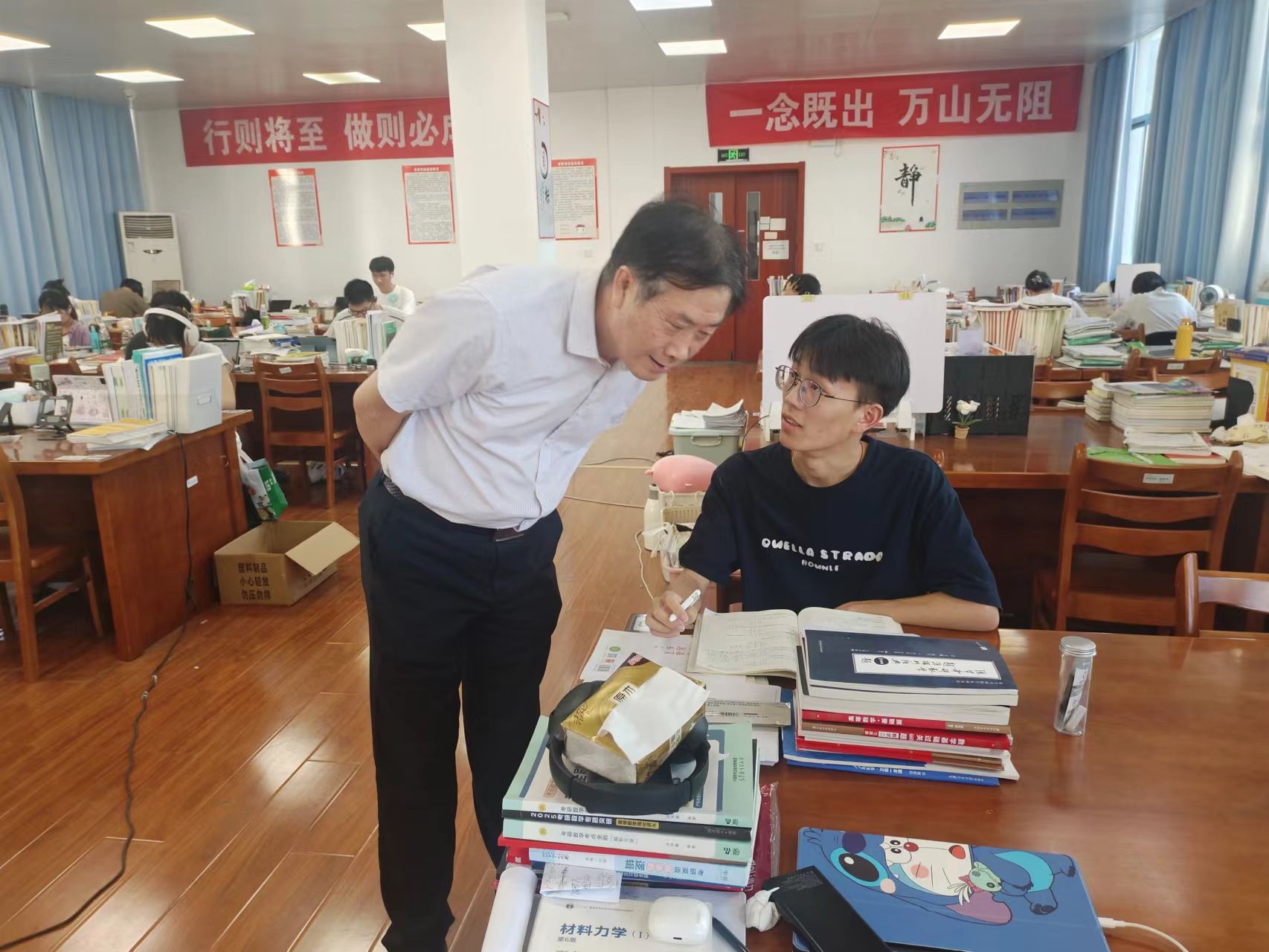 7月29日下午,云顶国际8588yd关工委常务副主任于顶成深入校史馆301室走访慰问暑期留校考研员工。