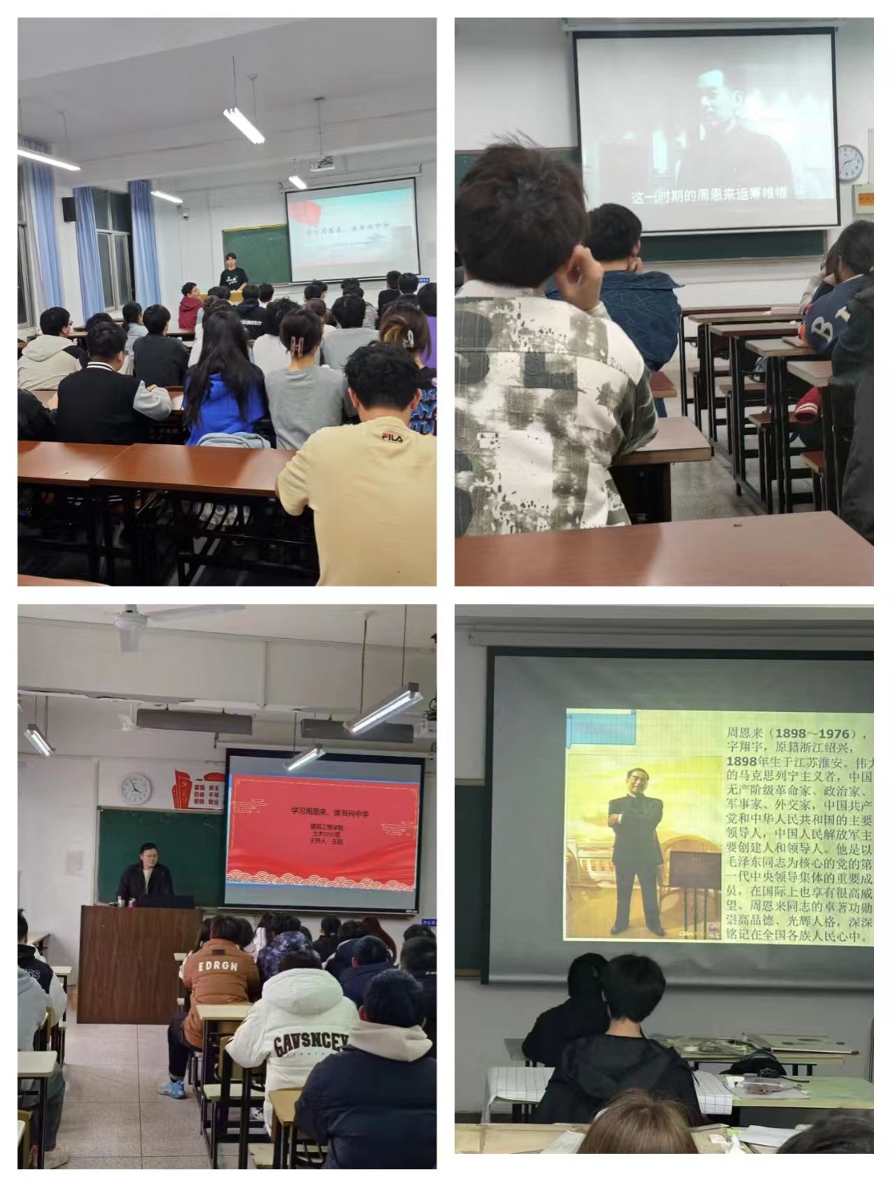 活动中,同学们以学习和弘扬周恩来的崇高精神和伟大风范作为切入点,对照周恩来班创建的内容,通过观影活动、团建、演讲等形式,学习周恩来事迹,感悟周恩来精神,筑牢理想信念、厚植爱国主义情怀,树立远大的理想和拼搏的斗志。