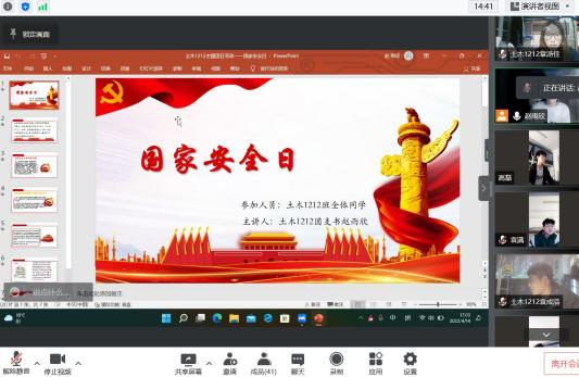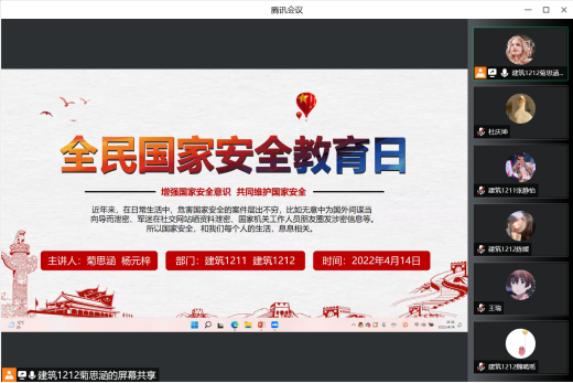国家安全是头等大事!在“4·15国家安全教育日”来临之际,云顶国际8588yd云顶国际8588yd团委通过召开主题班会、观看主题公开课、开展短视频线上接力活动等形式,组织开展2022年全民国家安全教育日主题团日活动,切实增强同学们的国家安全意识。