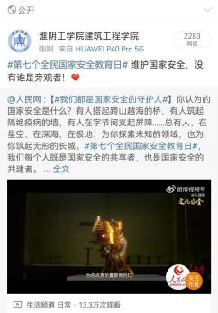 由院员工会牵头组织员工参与“国家安全教育主题短视频线上接力活动”。大家通过关注微信视频号“@中国老员工在线”后进入首页“全民国家安全教育”活动专题,添加话题 #守护青春 #全民国家安全教育日,发布原创主题短视频,参与话题接力。
