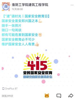 各班以宿舍为单位,通过中国老员工在线视频号、微博、B站等直播平台及中国老员工在线官网dxs.moe.gov.cn,收看“千万师生同上一堂国家安全教育课”主题公开课,将安全教育宣传到位,并组织同学们撰写观后感。
