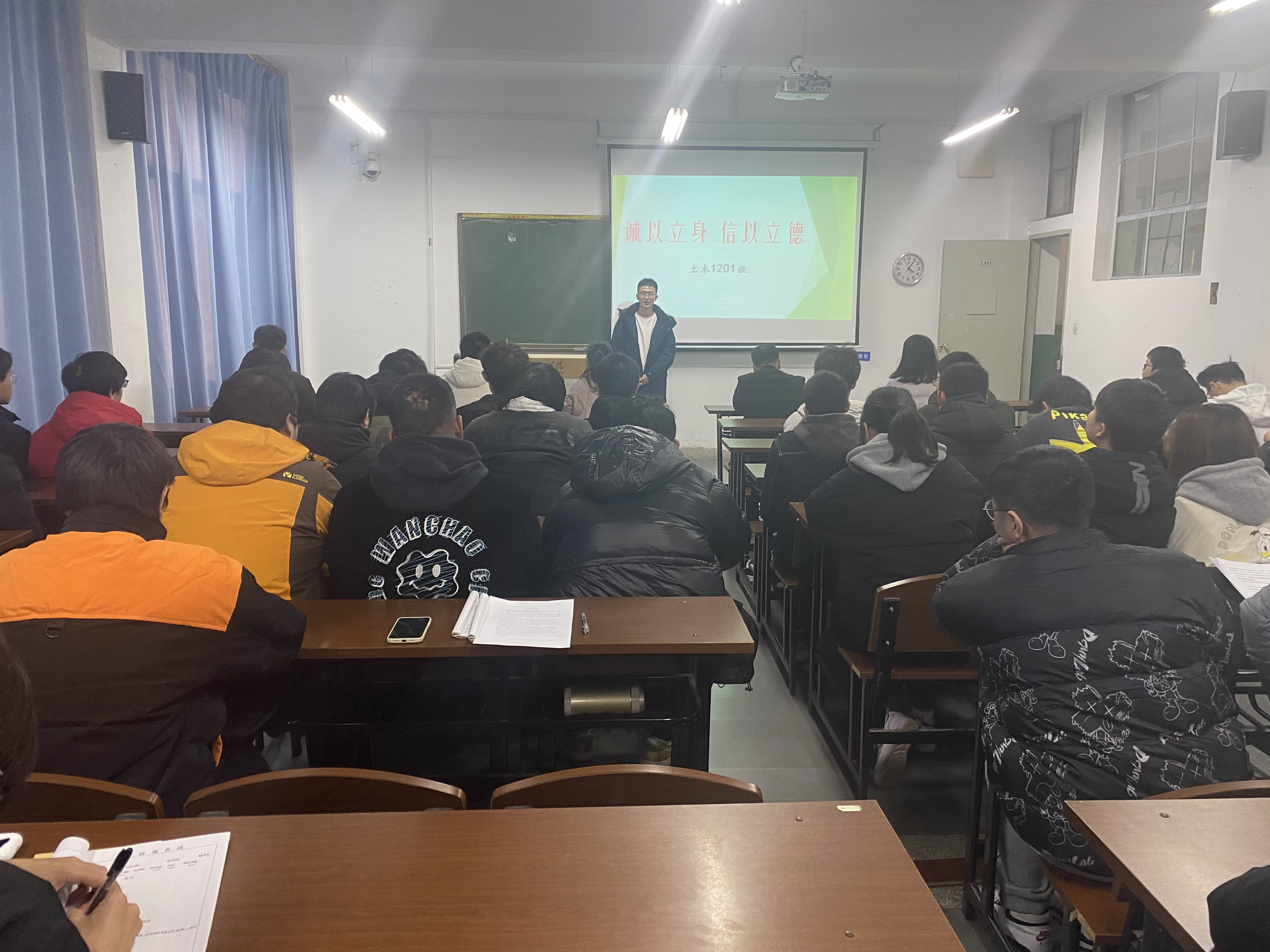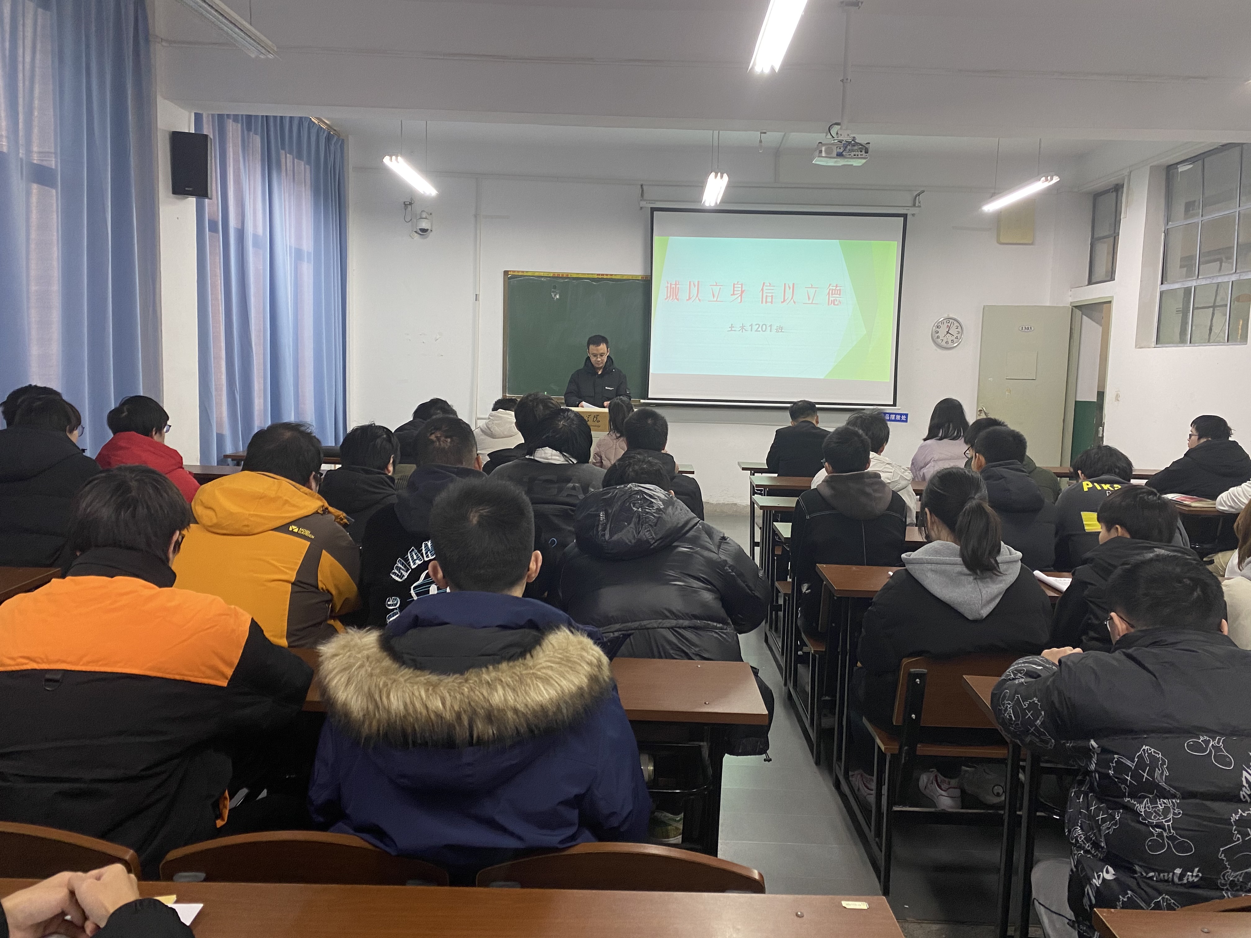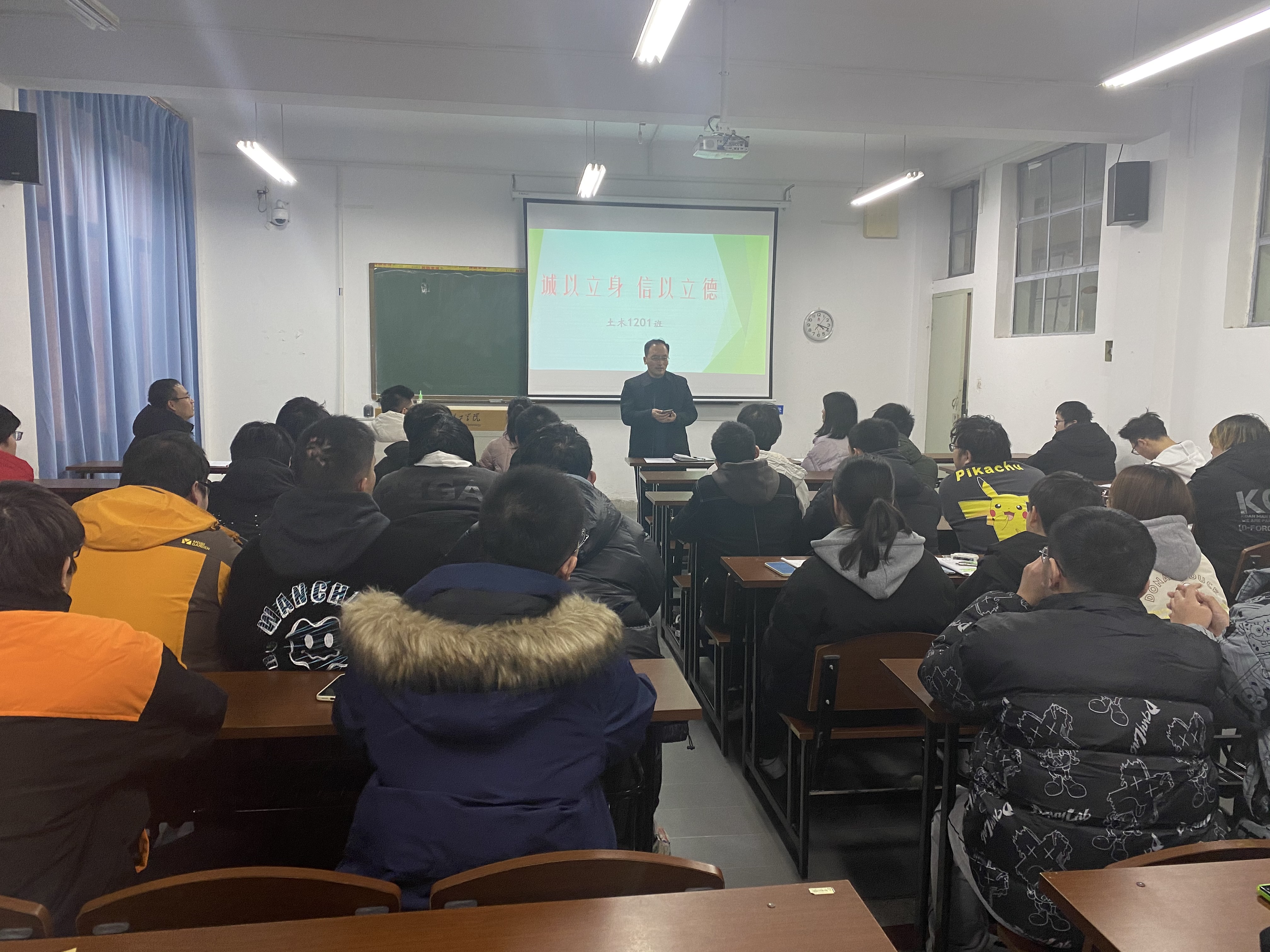2021年12月18日下午4点,云顶国际8588yd于品学楼1303开展“诚以立身,信以立德”主题班会,本次主题班会由土木1201班班主任李保亮老师主持,员工处处长张常新、建工公司党委副书记冯云平、学工办主任周彤、2020级辅导员孙雨桐、土木1201全体同学参加了本次会议。