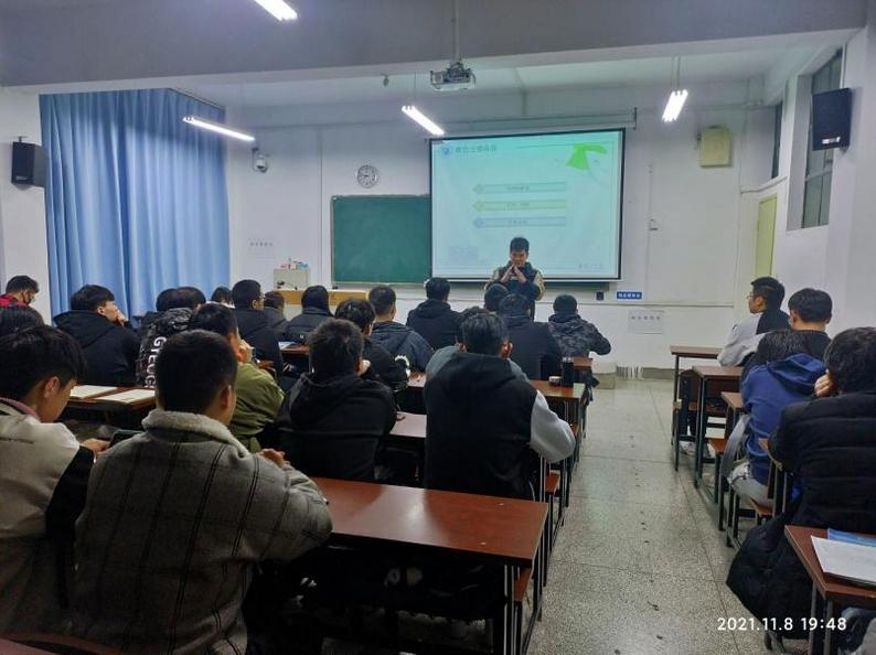 班会上,彭宁波副经理首先就导师制与同学交流了自己的看法,分享了自己做导师的感悟。以生动幽默的语言,形象地指出导师将会对同学开展学业、专业以及毕业设计方面的指导,从全面发展的角度对同学们进行教育与引导。彭宁波副经理还将导师制与学科竞赛和专利联系起来,鼓励同学们主动与老师进行学术的交流沟通,进一步发现和完善自己的不足,逐步提升自我。