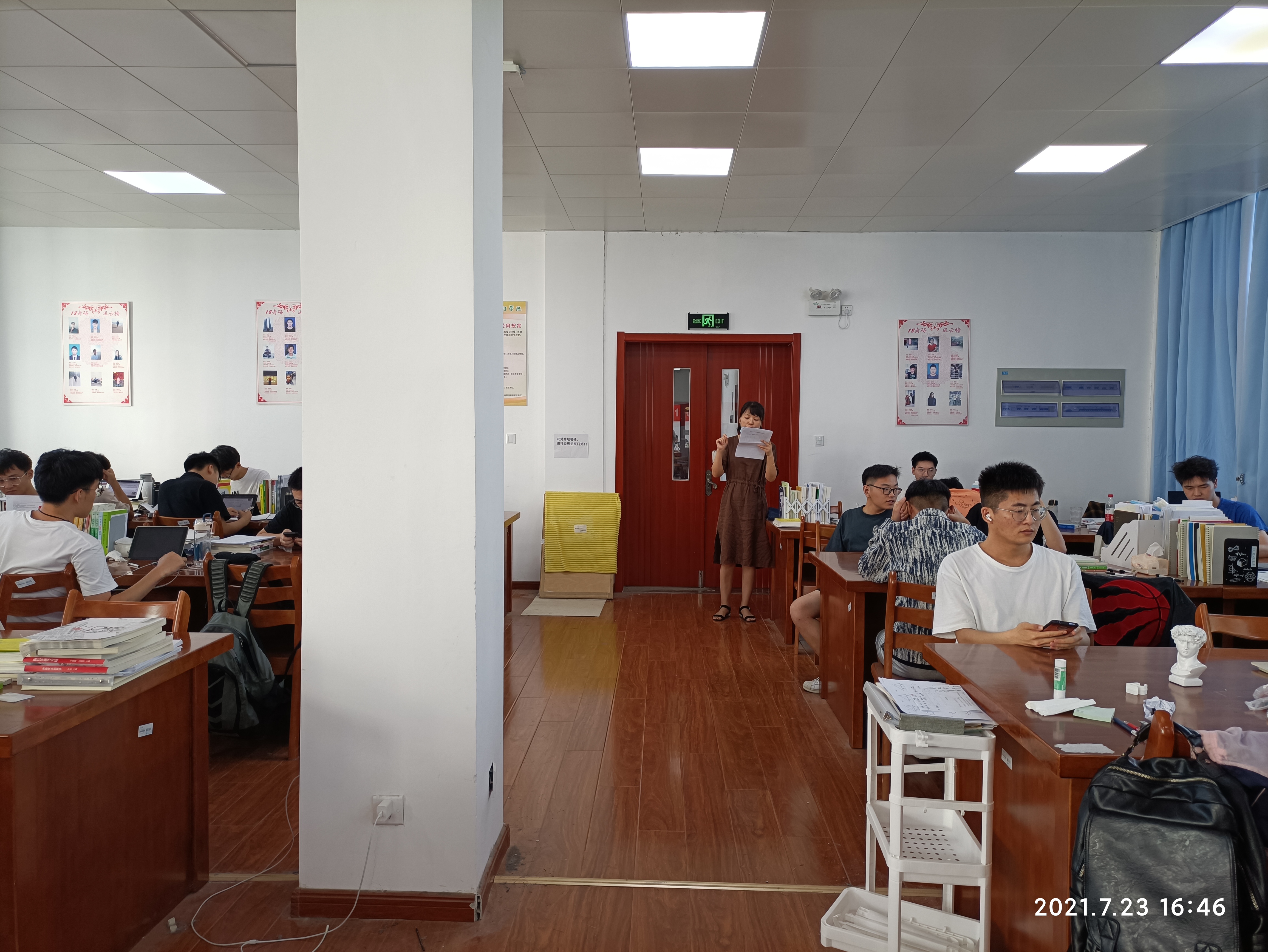 会上,冯云平副书记强调了留校期间的相关要求:第一,严格销假制度:非必要不外出,如有特殊情况申请离校外出的,必须办理请假手续;第二,做好考研教室的消毒、卫生工作:各班级安排好值班表,做到卫生无死角,消毒及时到位;第三,落实晨午检制度:留校员工需每日在线填写体温数据,如有咳嗽、发热等状况第一时间联系楼管和辅导员;第四,疫苗应打尽打:目前暑期留校员工有2名同学因身体原因尚未接种疫苗,如果身体条件允许,请尽快到附近社区接种疫苗;第五,心无旁骛、全力备考:要珍惜公司提供的考研教室等资源,抓住暑期复习的黄金时间,合理规划,全力备考,同时也应注意防暑,劳逸结合。