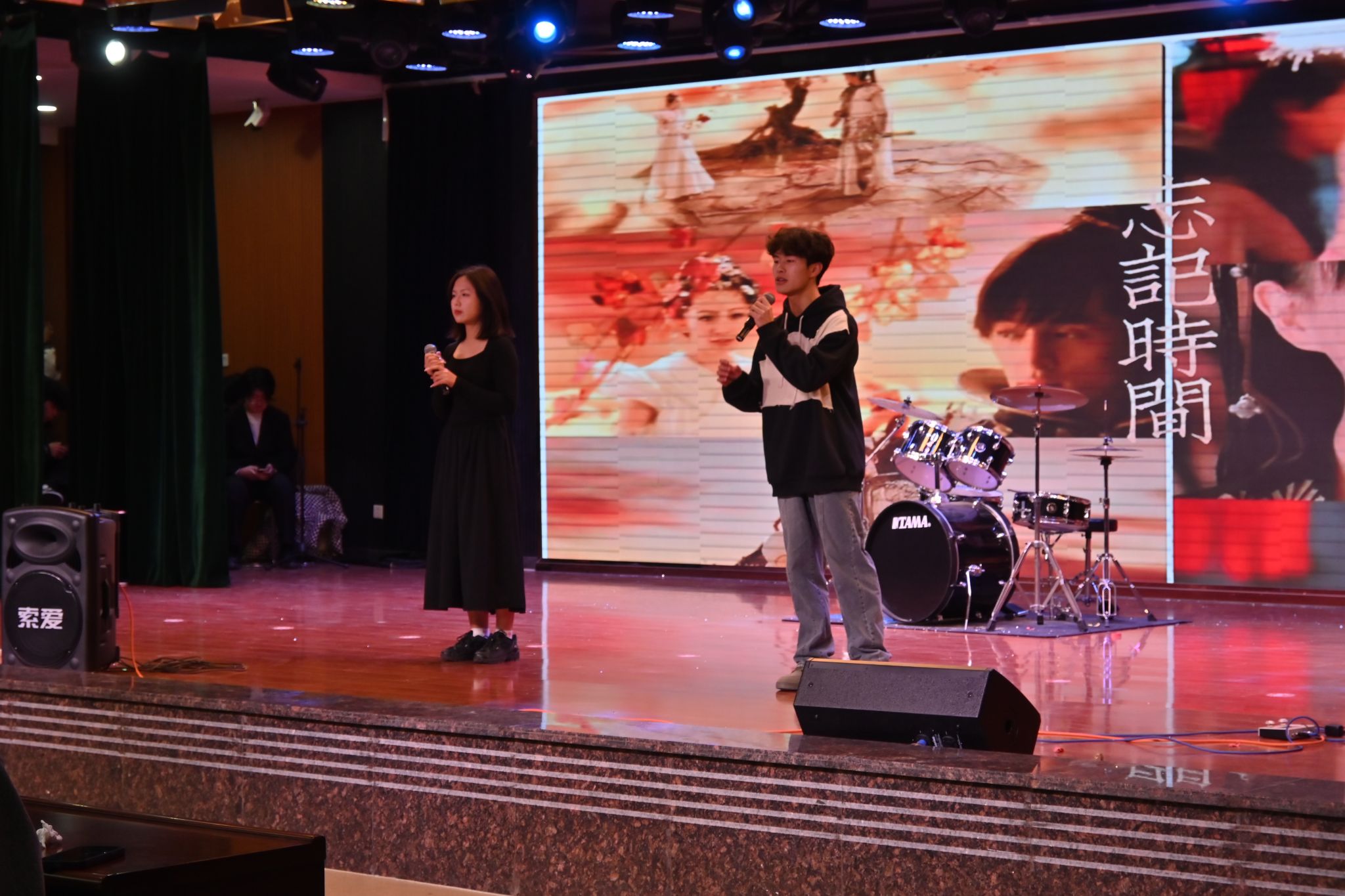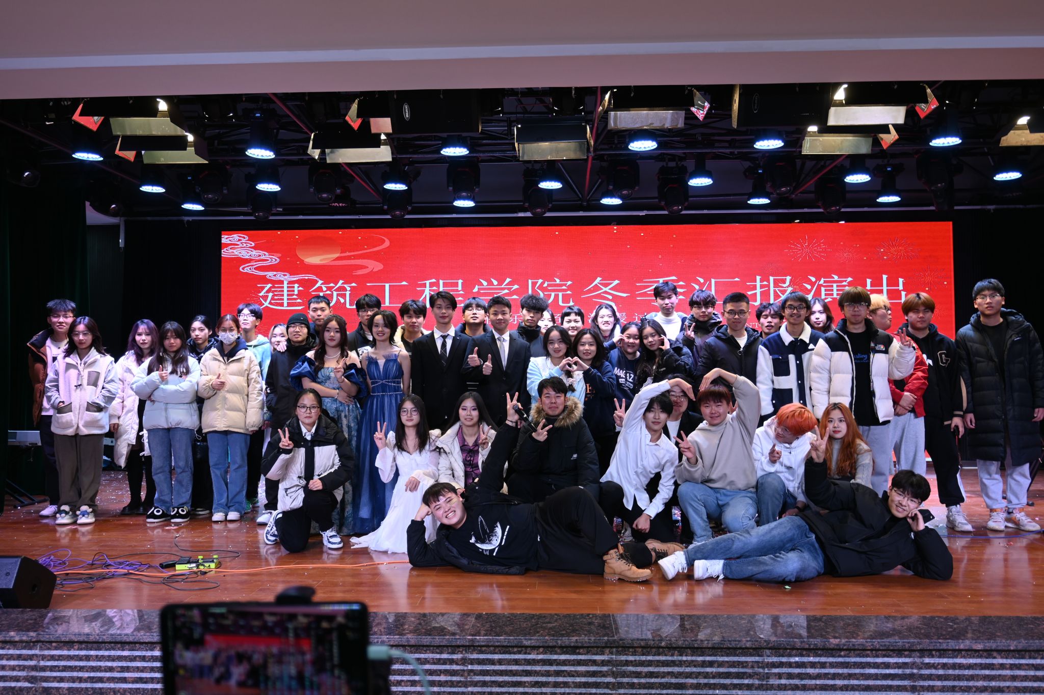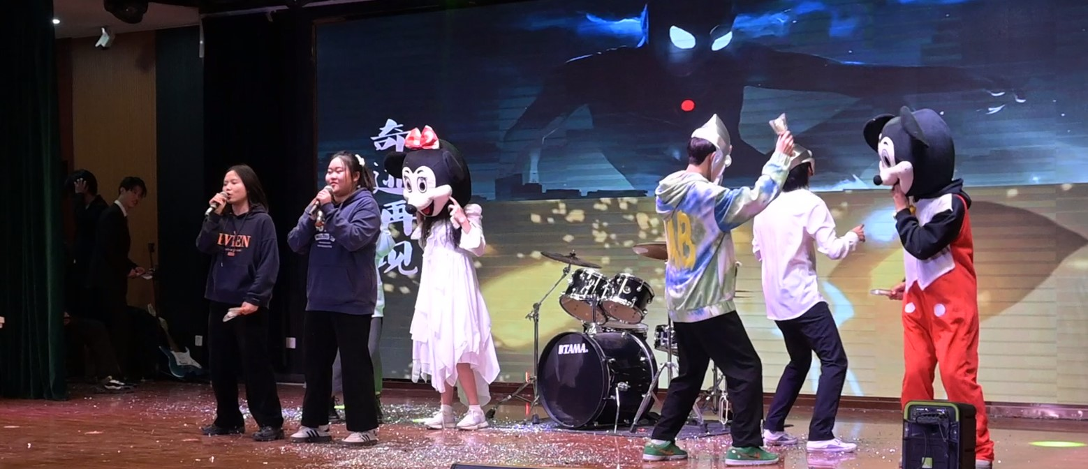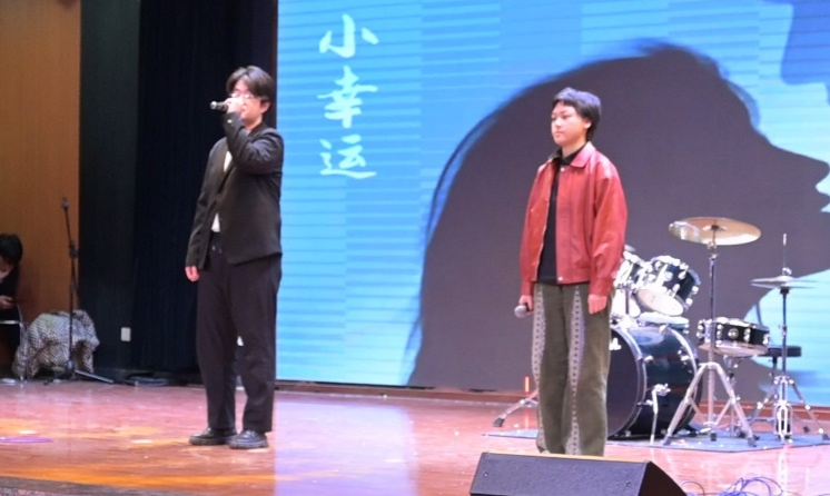 四位主持人缓缓上台,沉稳有力地宣布演出正式开始。报告厅灯光变暗后,大灯骤亮。掌声响起,一首仙剑奇侠传片尾曲《忘记时间》惊艳全场。声音的婉转悠长,不禁把人带入到故事情节中。朱俊玮为大家带来了首《对的人》,独特的嗓音引得台下的同学们直呼叫好。自然不能只听歌曲,舞蹈表演便随之而来。活力四射,热情火辣的女团舞《Lovesick Girls》将氛围带向了高潮。实力俱佳的器乐队为大家带来了首《我还年轻我还年轻》、小情歌《形容》以及改编混唱《演员》+《认真的雪》又将晚会一次次推向高潮。