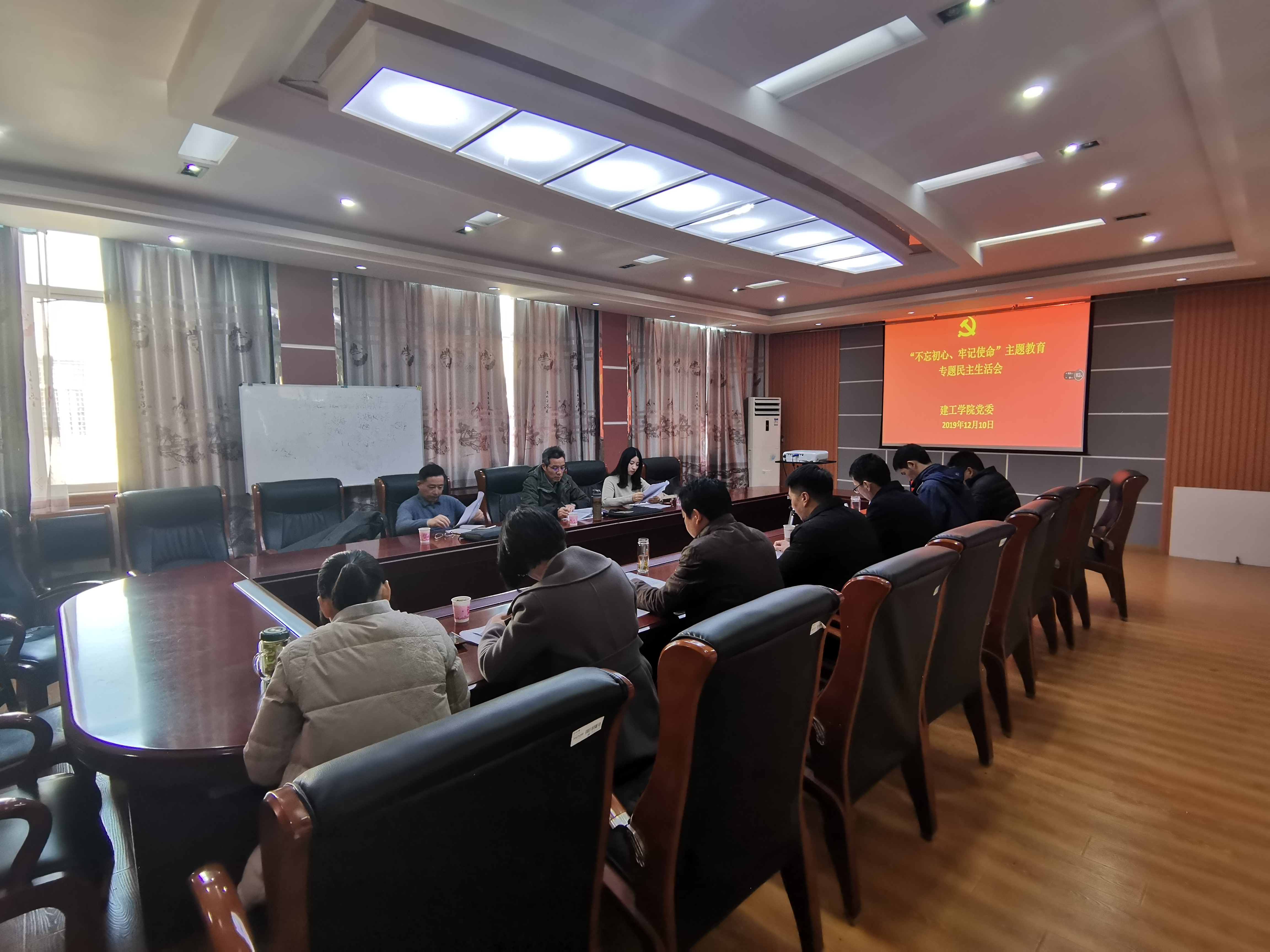 2019年12月10日上午9点,建工公司党委在北京路校区品学楼3316室召开“不忘初心、牢记使命”主题教育专题民主生活会,建工公司党委书记韩飞、经理董云、副书记副经理陈亚东、副经理周潮、党委委员罗雅丽、张继华参加了本次会议,校纪委副书记许东风、校第三指导组张元华、王慧老师列席会议,会议由公司党委书记韩飞主持。